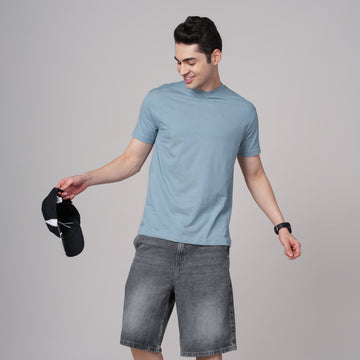 Premium Cotton Stylish Grey Striped Flat Knit T-Shirt