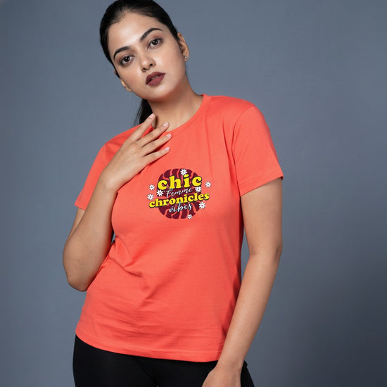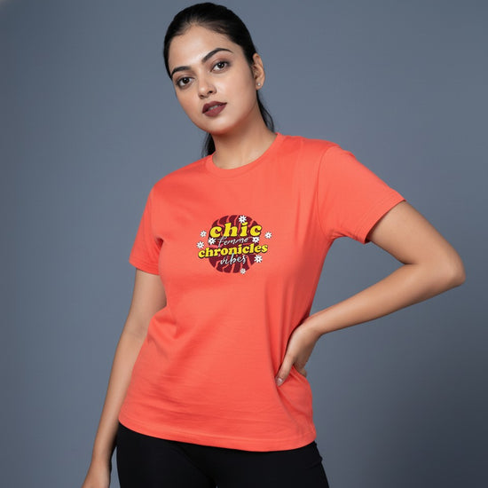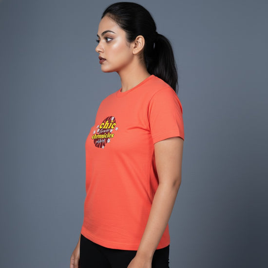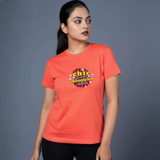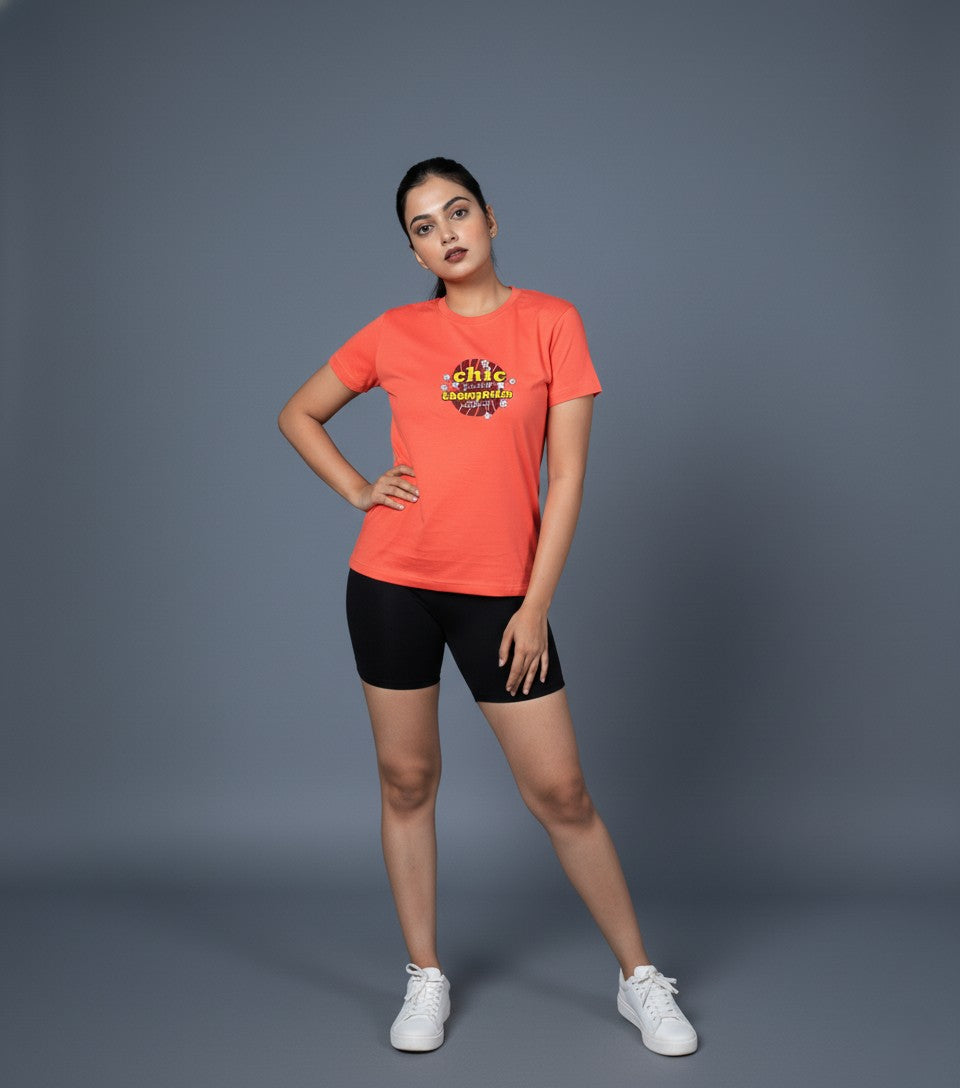 Featuring the trendy and uplifting “Chic Chronicles” typography print, this hot coral tee is perfect for casual days, brunch outings, college looks or gifting girls who express their style with confidence. 💕📸🌟