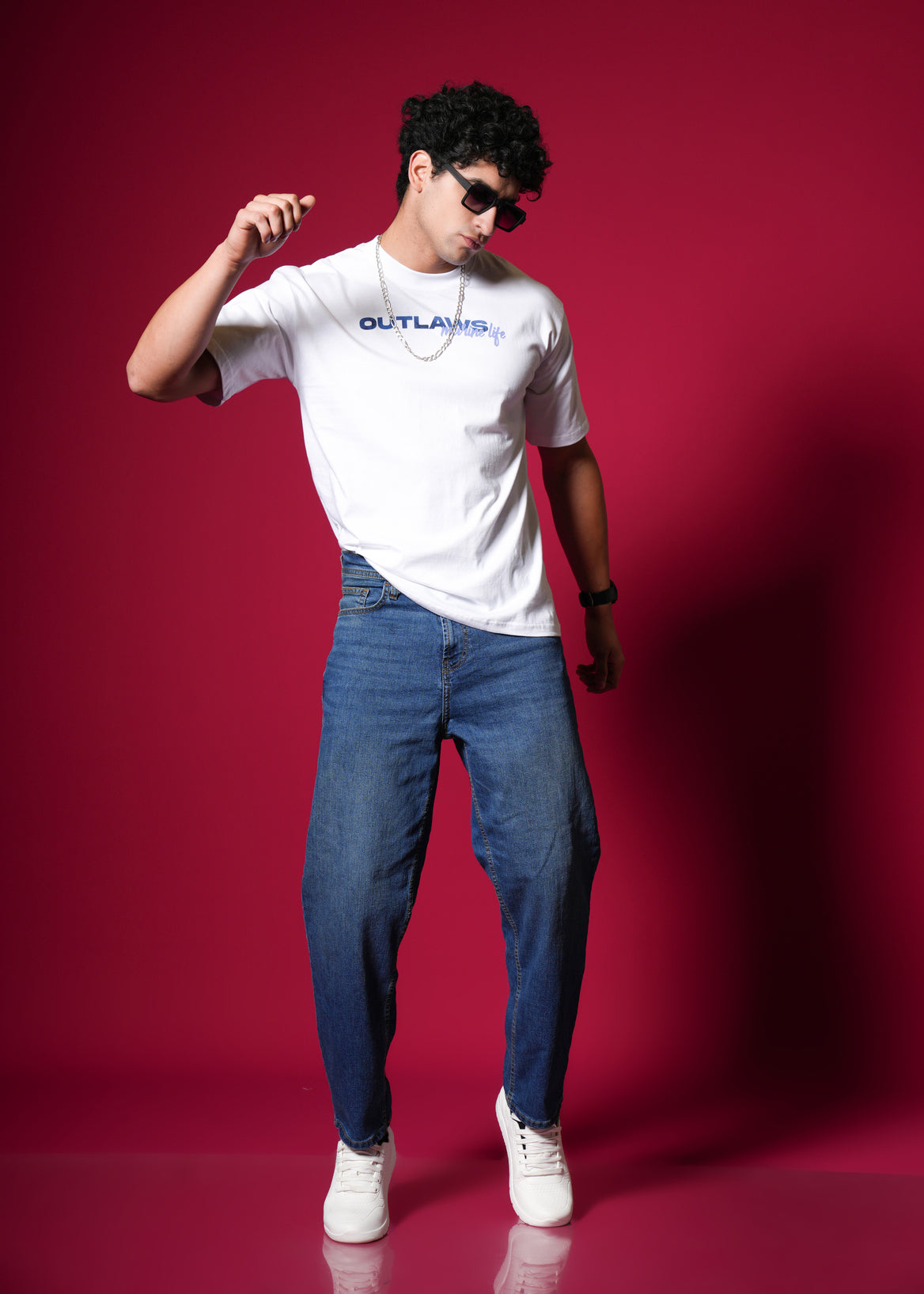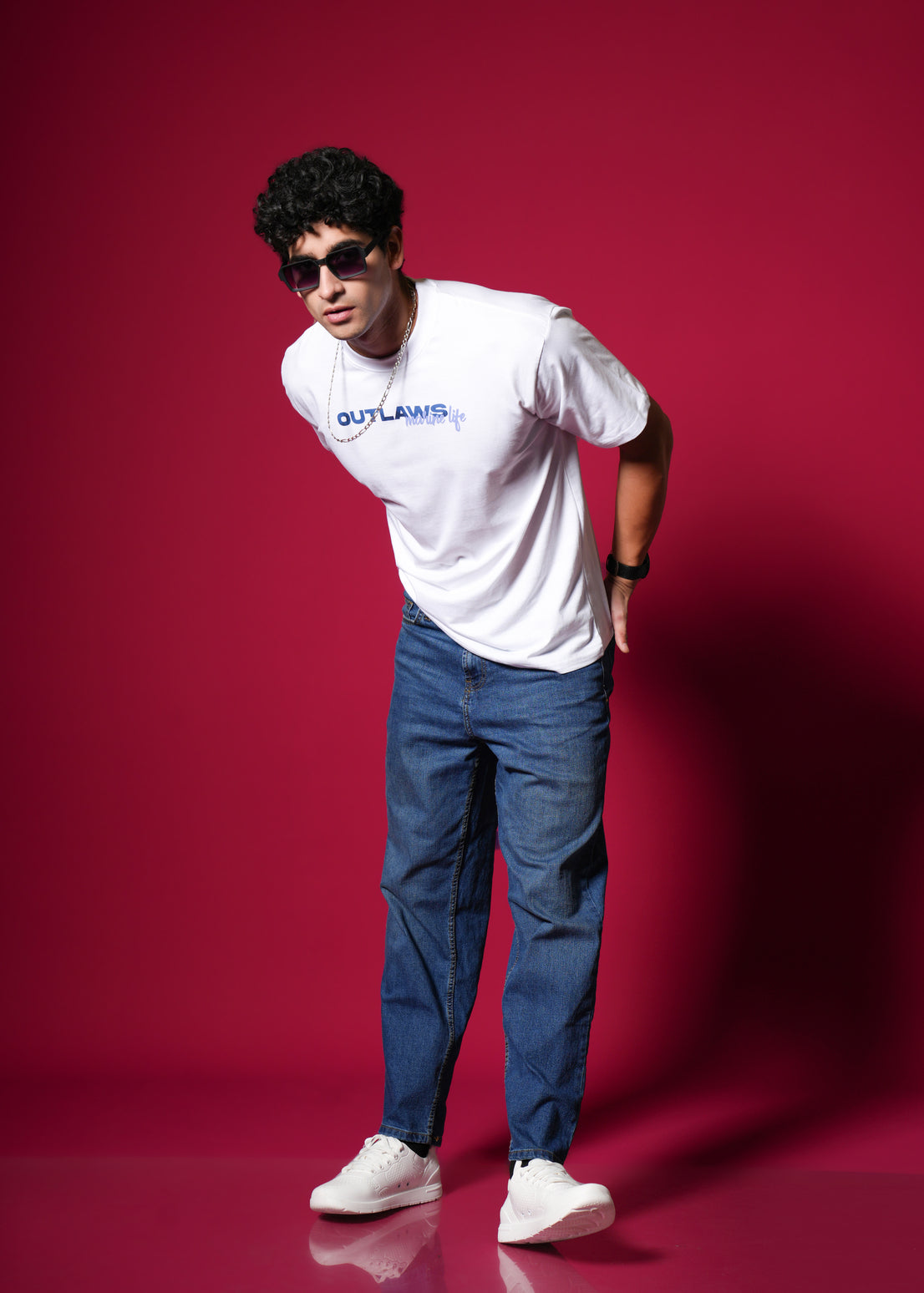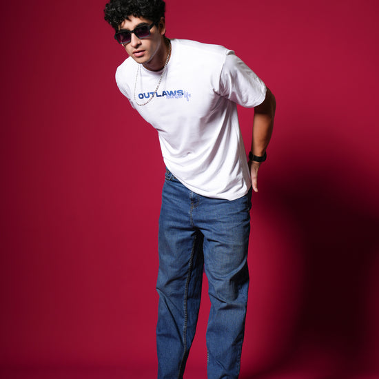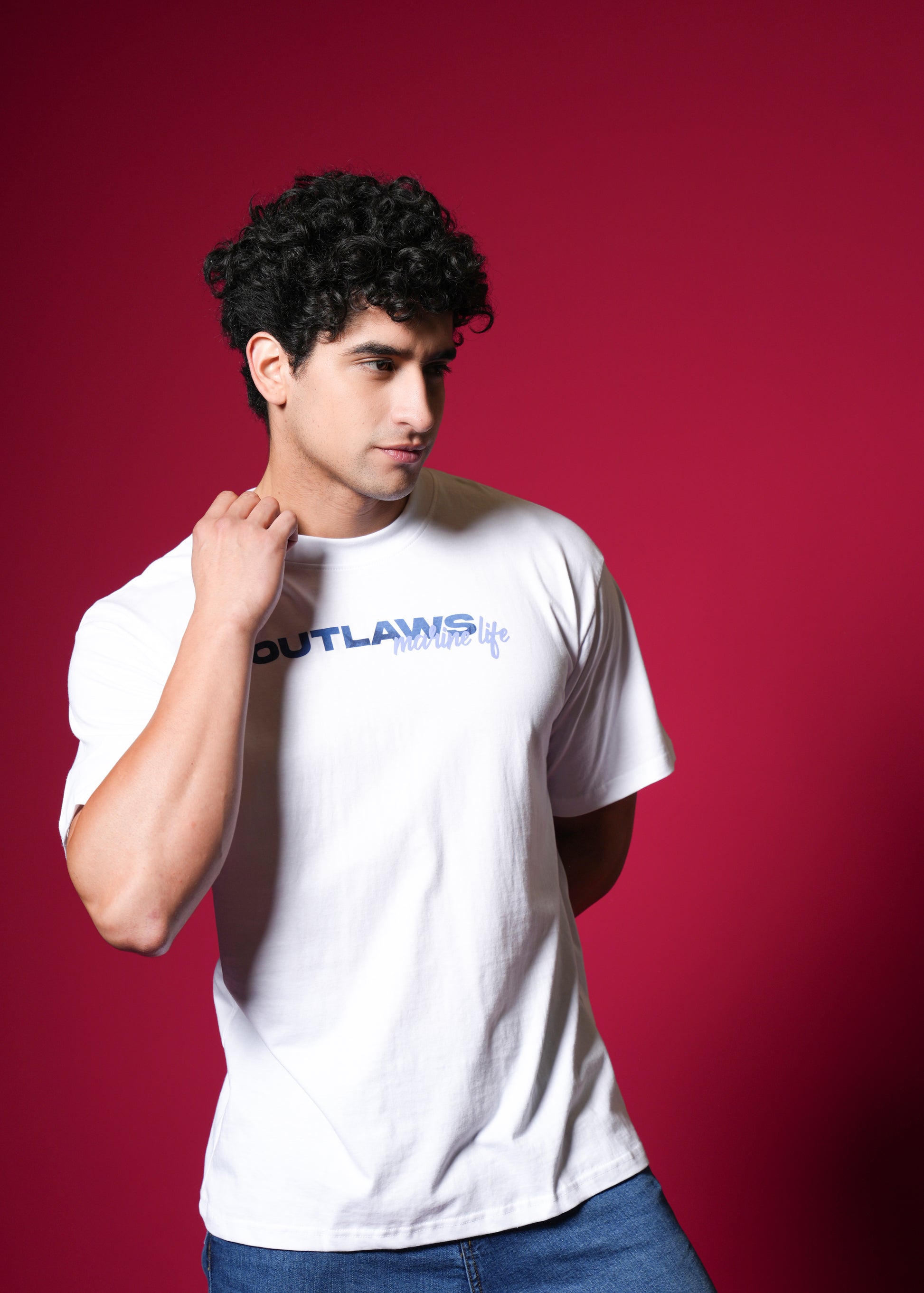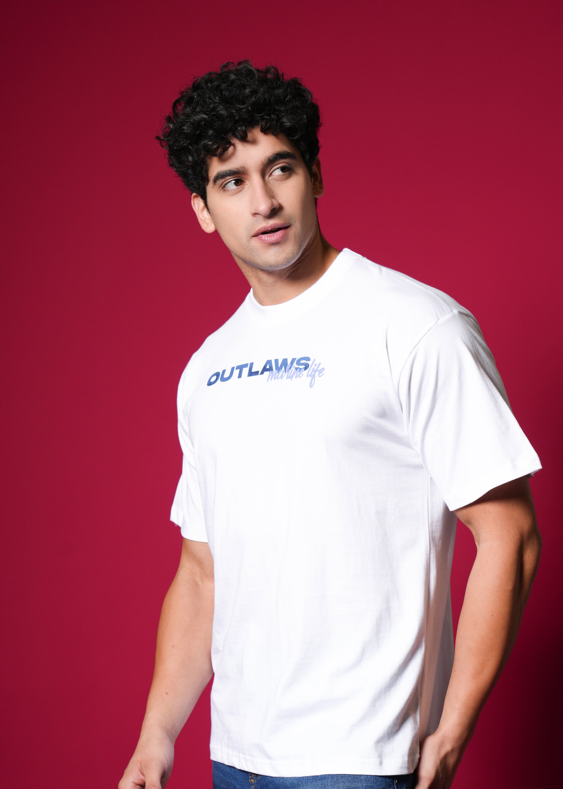 Outlaws White Oversized T-Shirt β 100% Cotton Streetwear Style