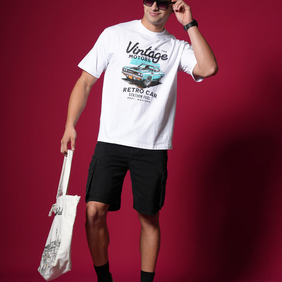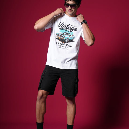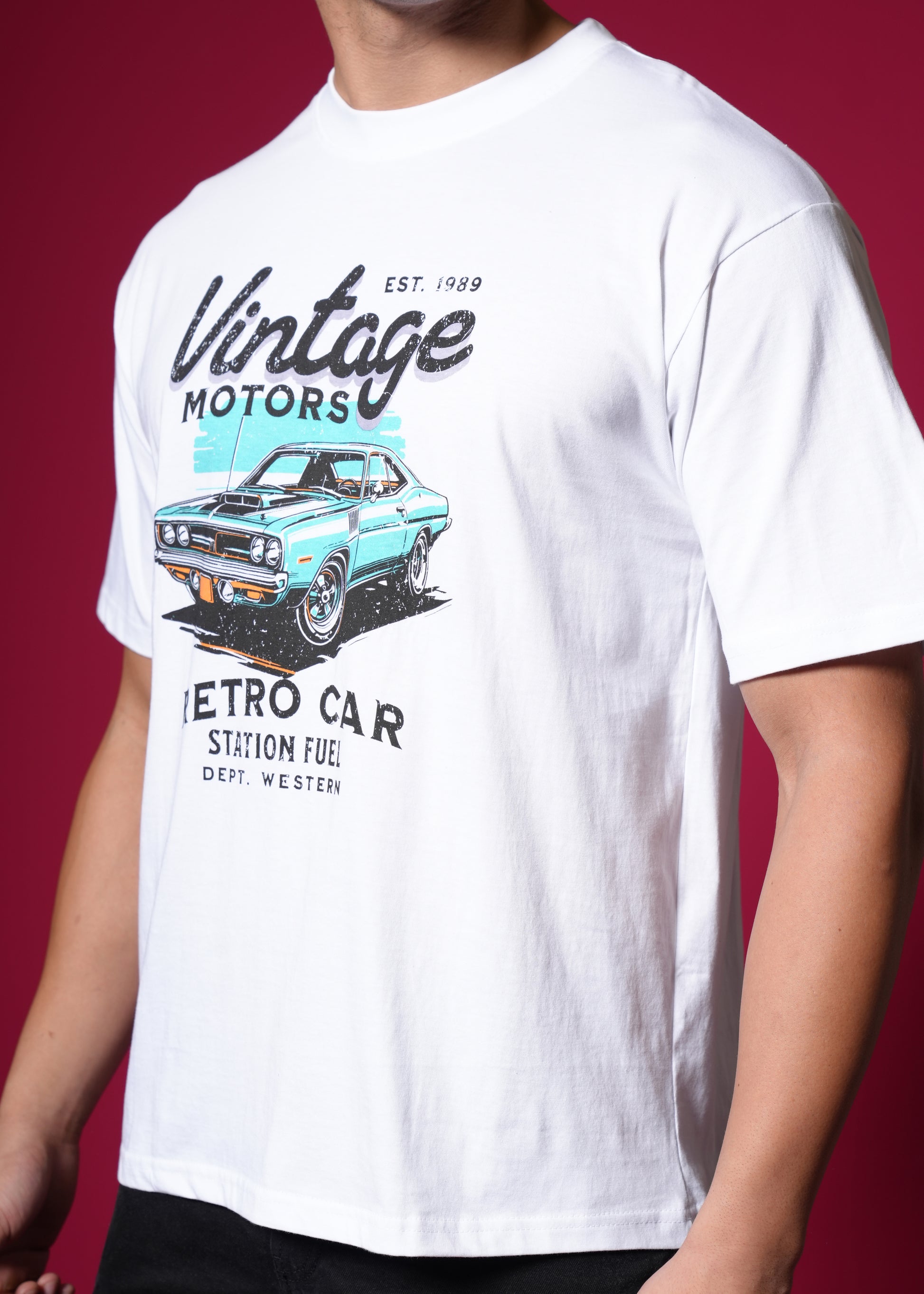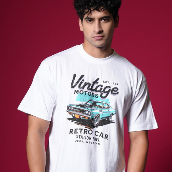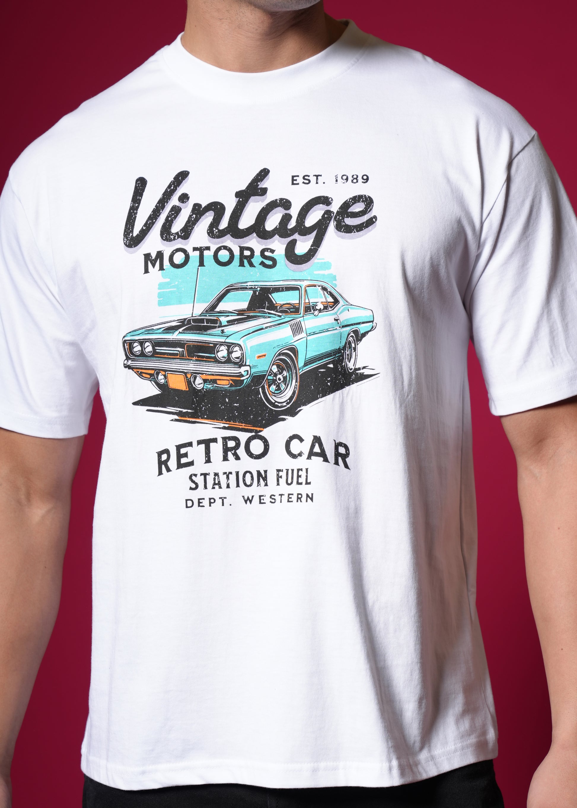 The front graphic features a bold retro car design with βVintage Motorsβ typography, giving off serious old-school vibes π οΈπ¨. Perfect for car lovers and streetwear enthusiasts alike.