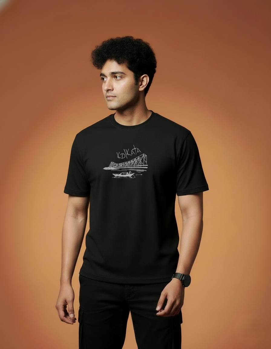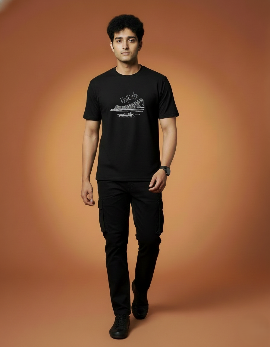 Menβs Outlaws Regular Fit T-Shirt with Kolkata City Graphic | 100% Cotton Casual Wear