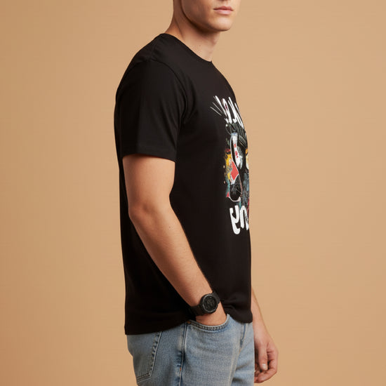 Made with soft, bio-washed cotton, this tee ensures lasting quality, a smooth texture, and a comfortable regular fit ideal for daily use. Pair it with jeans, cargos, or shorts for an effortlessly cool outfit that keeps you looking sharp and relaxed all day.