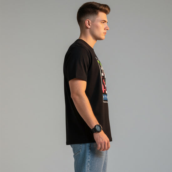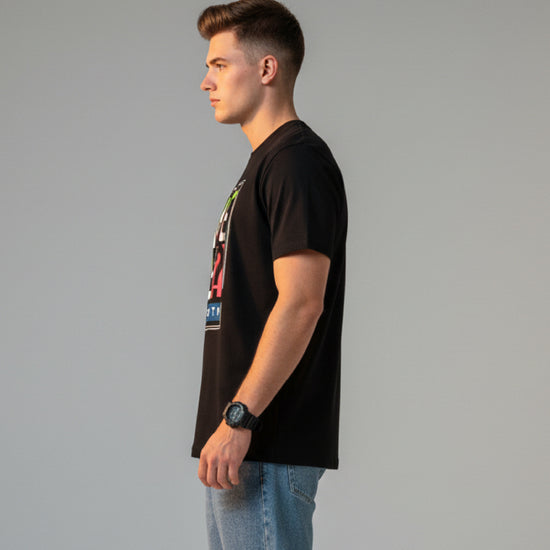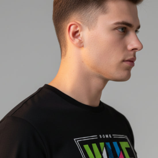Made with soft, bio-washed cotton, this tee ensures lasting quality, a smooth texture, and a comfortable regular fit ideal for daily use. Pair it with jeans, cargos, or shorts for an effortlessly cool outfit that keeps you looking sharp and relaxed all day.