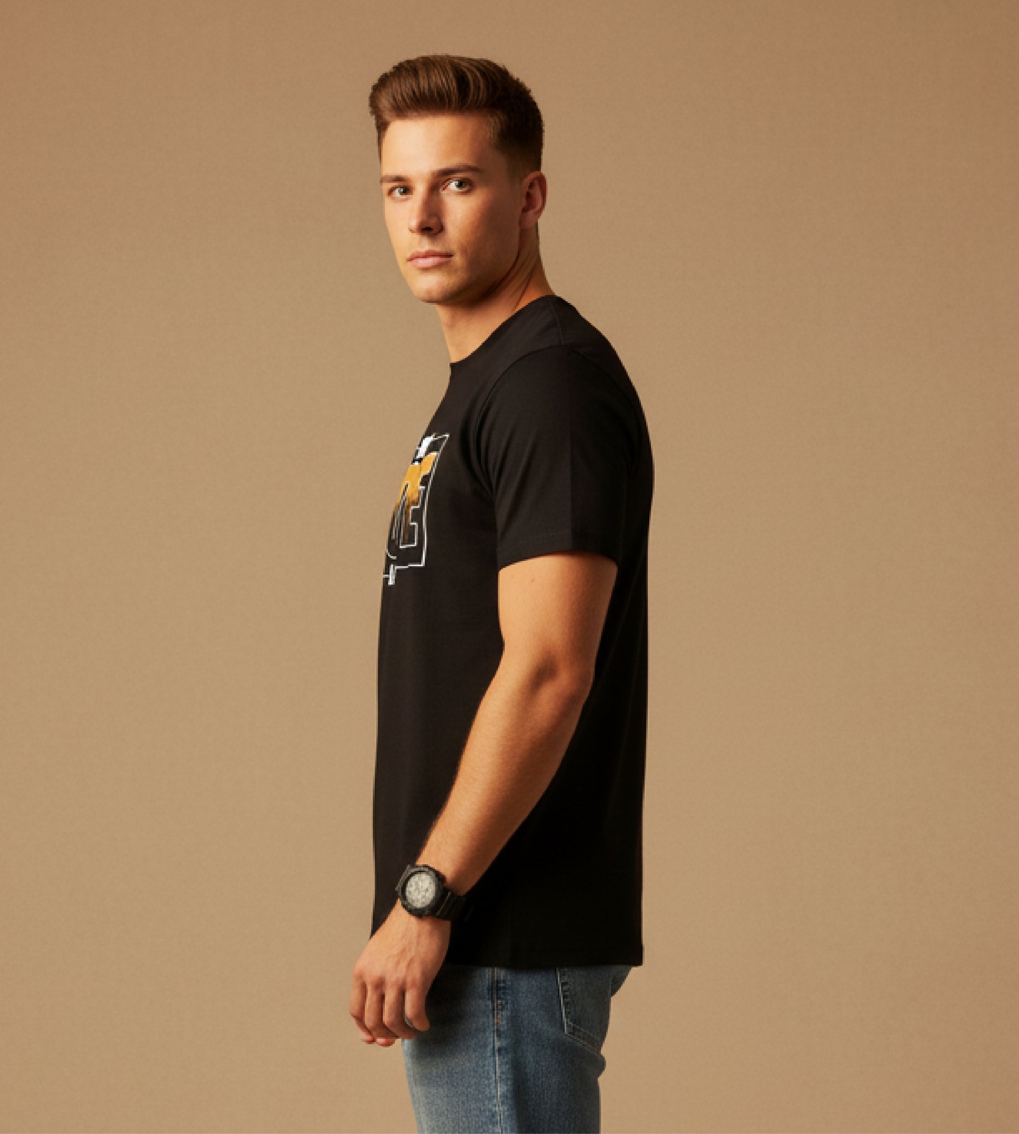 Menโs Abstract Rayon Shirt โ Black & Orange Bold Casual Wear