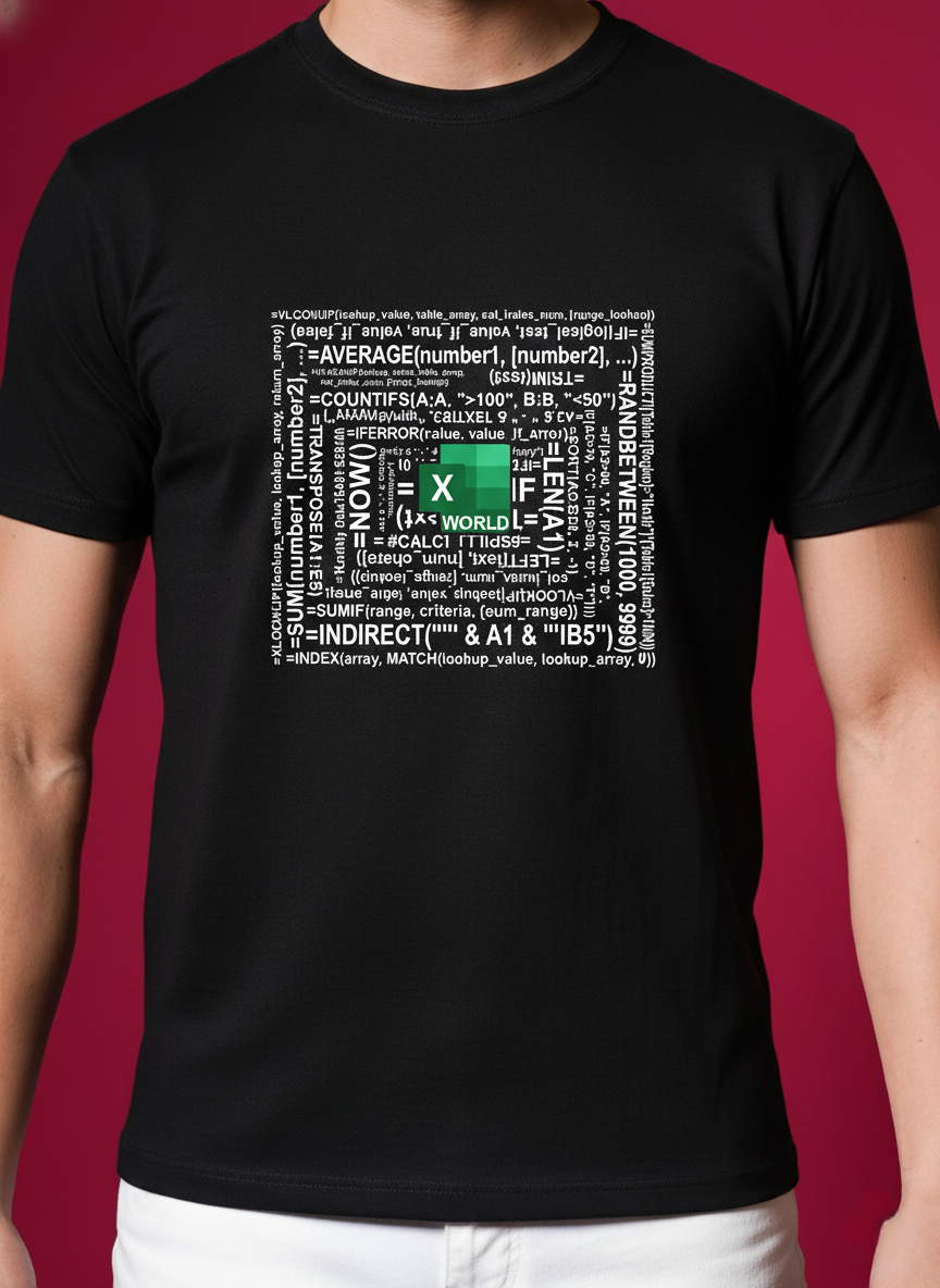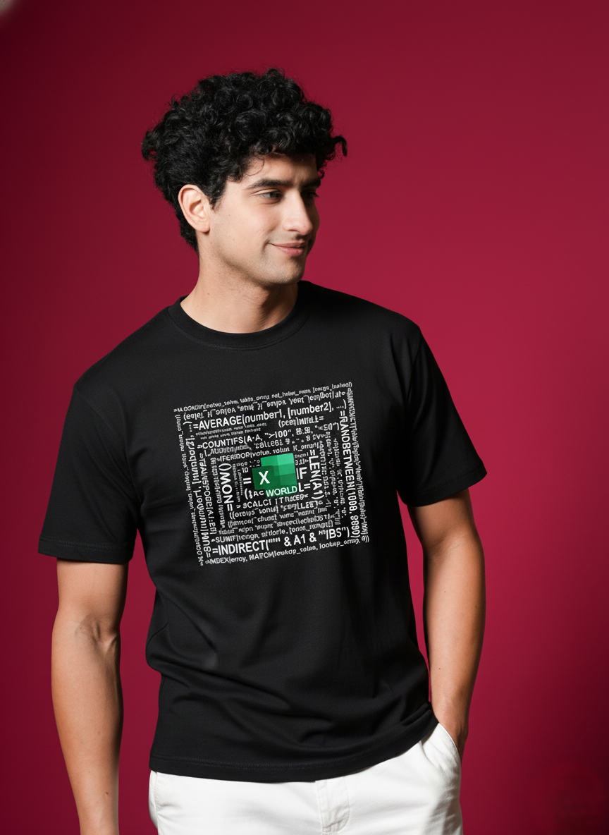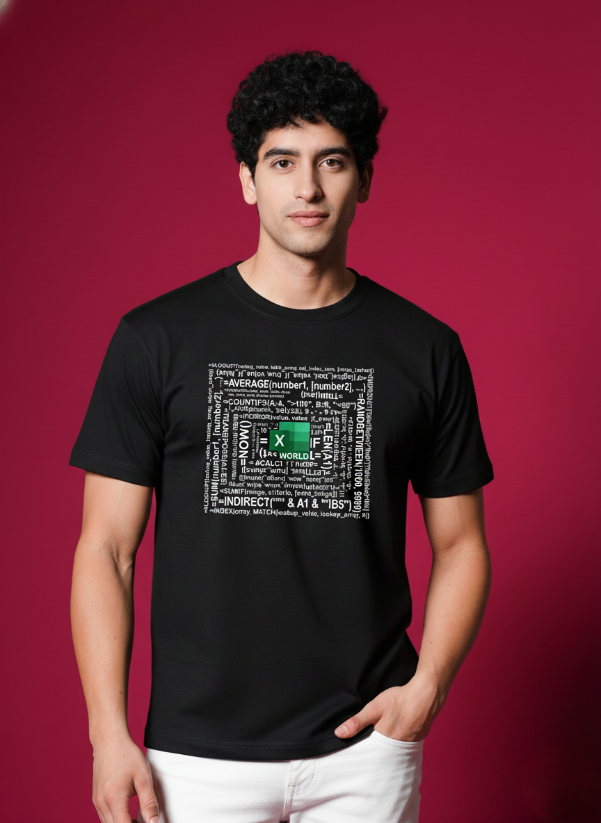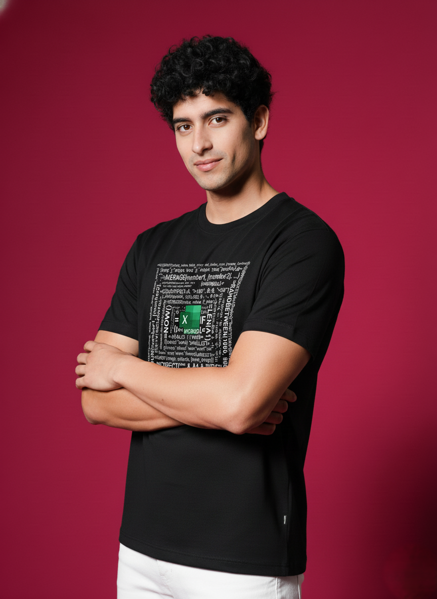 Crafted from 100% premium cotton, this tee offers all-day comfort, breathability, and a soft feel against the skin. The playful Excel formula-inspired design on the front adds a fun twist, making it a great conversation starter for work, college, or weekend outings. 👕🔥