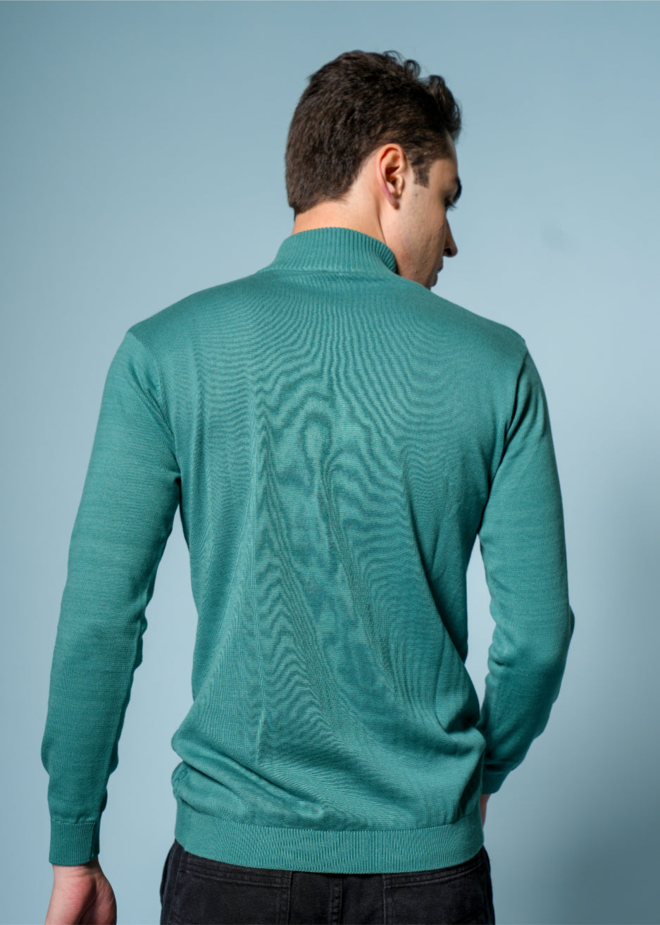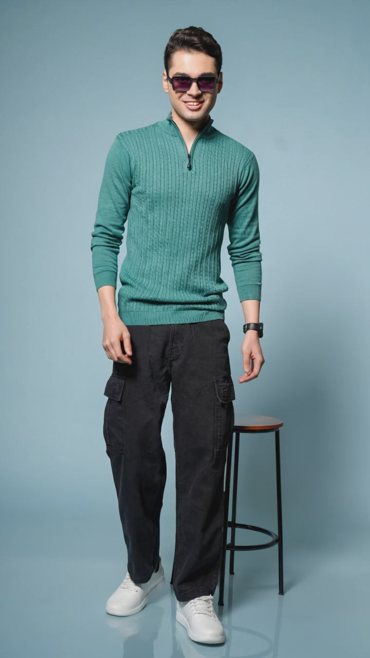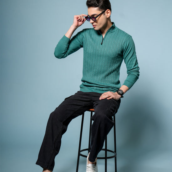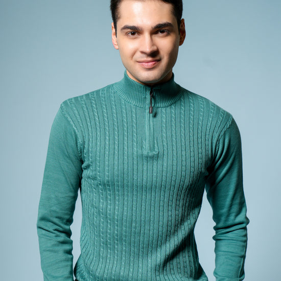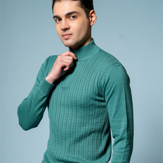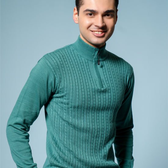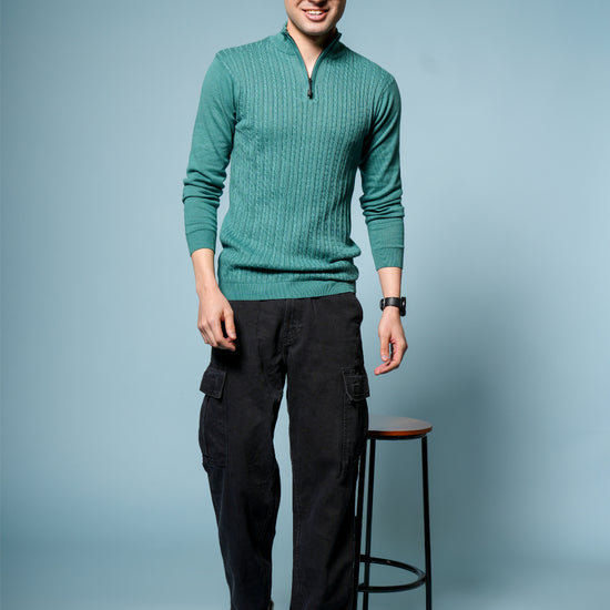 Men’s Pure Cotton Sea Green Textured Knit Sweater – Premium Comfort & Timeless Style