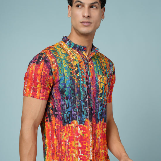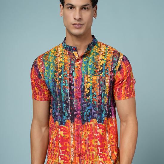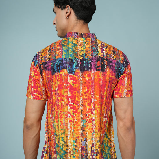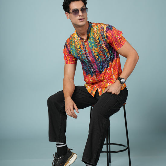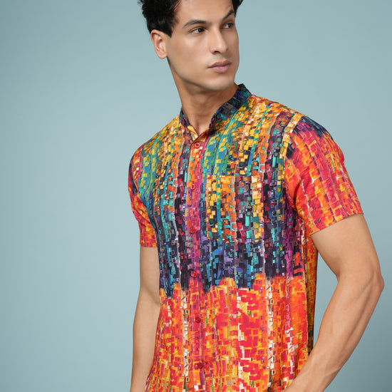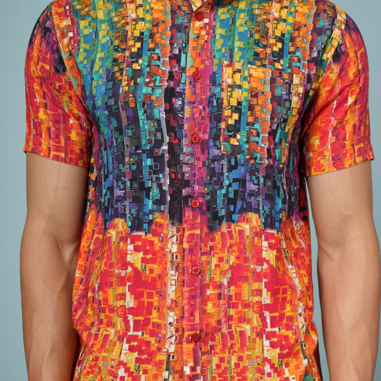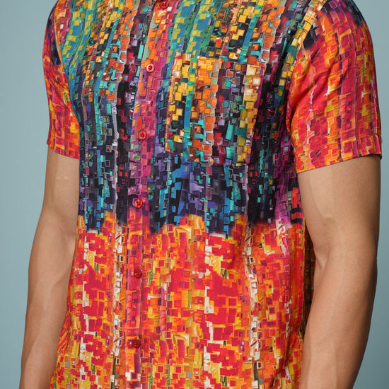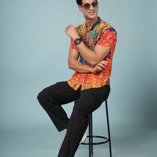 The multicolor abstract pattern adds a modern, artistic flair, making it perfect for vacations, brunches, or weekend outings. With its short sleeves, lightweight texture, and relaxed fit, this shirt blends comfort with trend-right fashion.