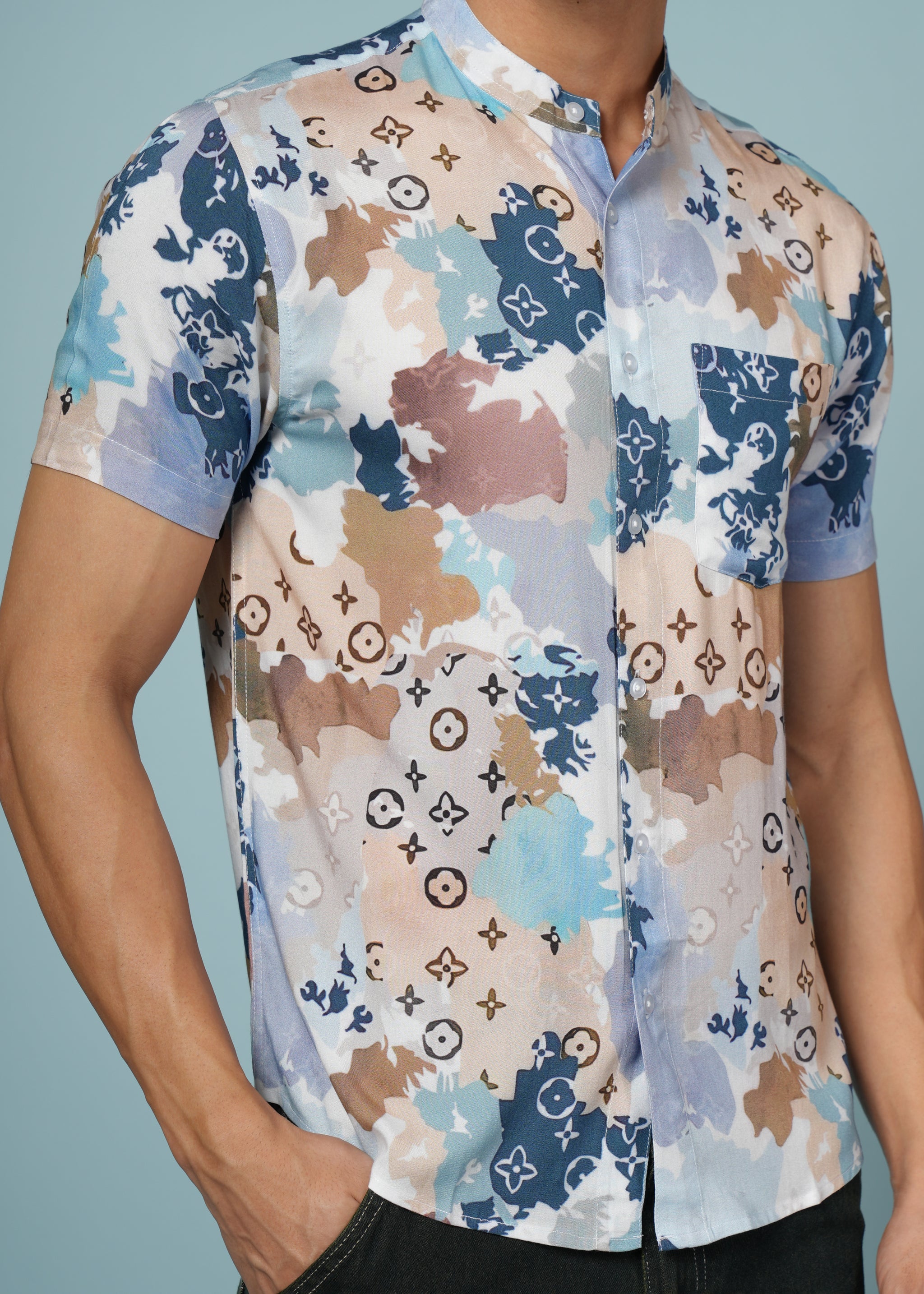 Men’s Printed Rayon Shirt with Mandarin Collar – Soft & Stylish Casual Wear