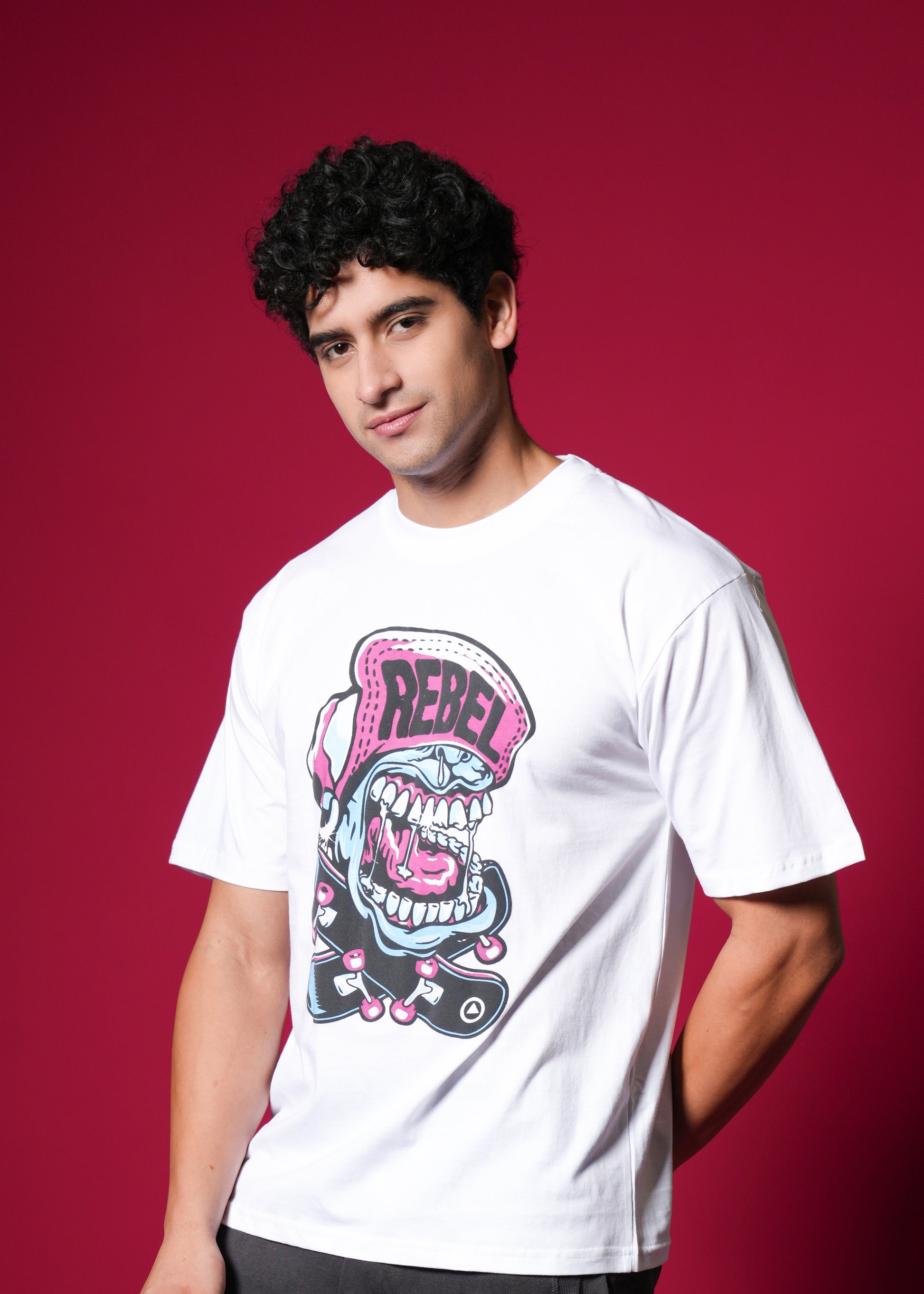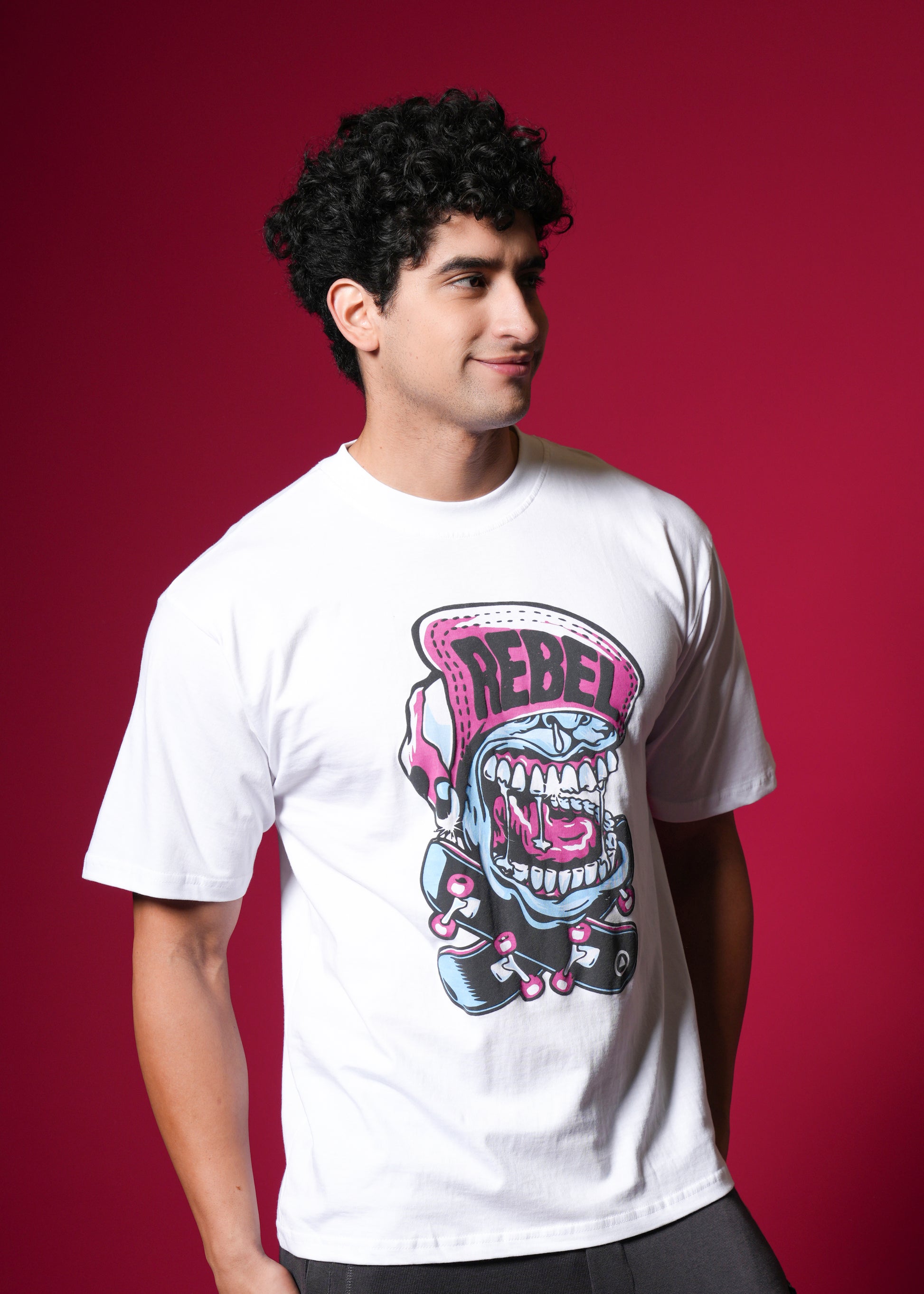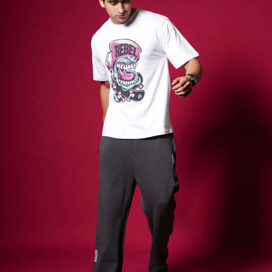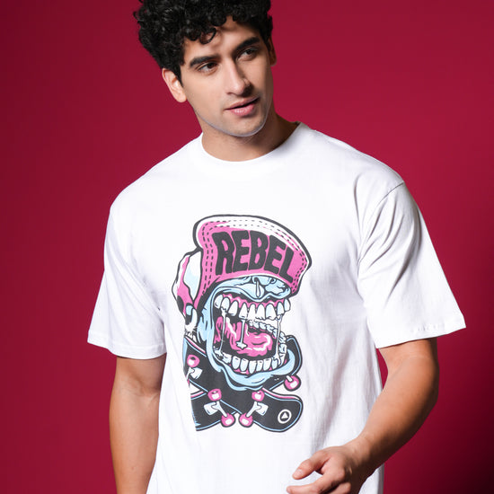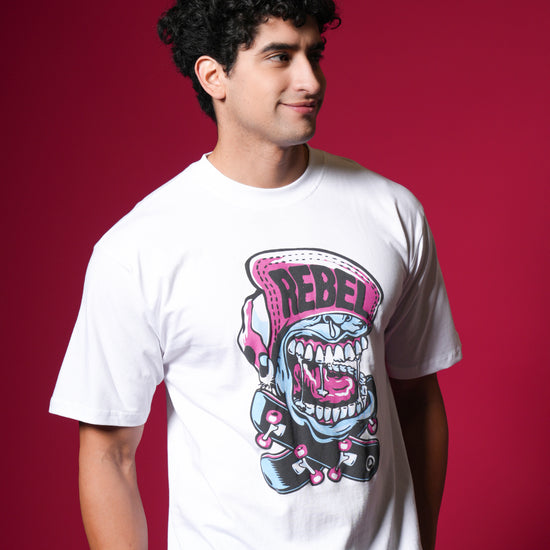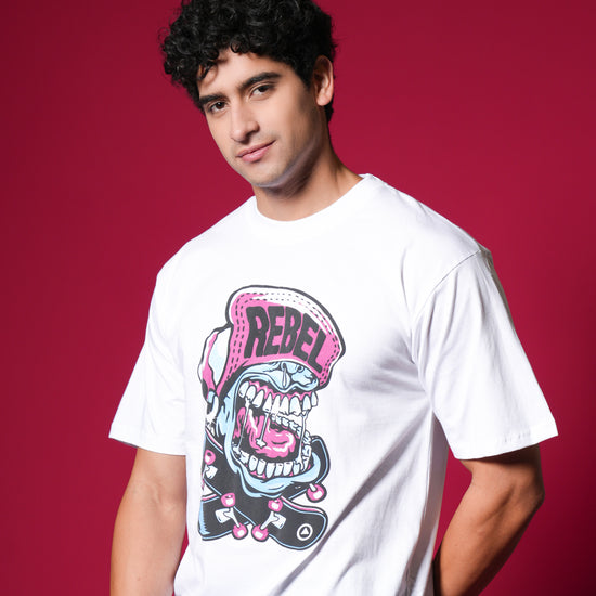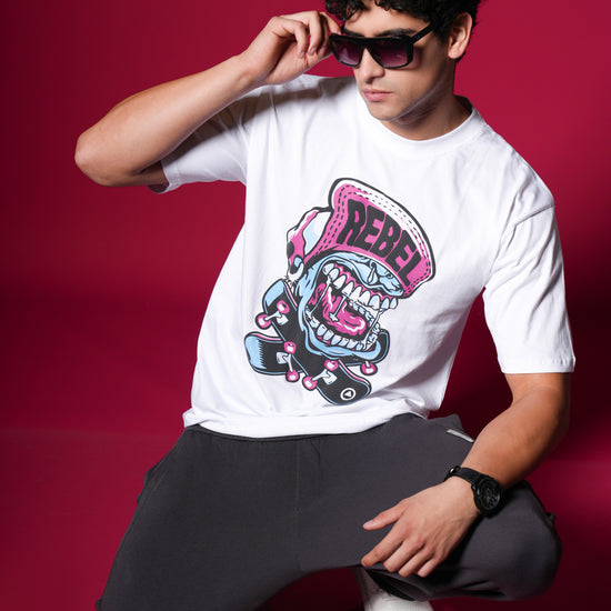 Scream your style with this vibrant, oversized white tee featuring a loud, cartoonish "REBEL" graphic with bold pink and blue accents. Crafted from 100% bio-washed cotton, it delivers superior comfort and a soft touch. This breathable, easy-to-style shirt is your perfect choice for a playful yet edgy streetwear statement that screams personality! ✨