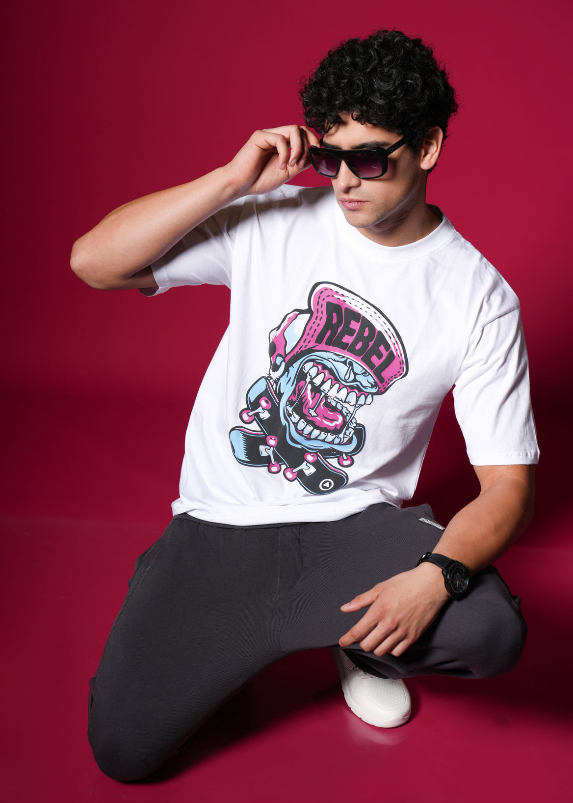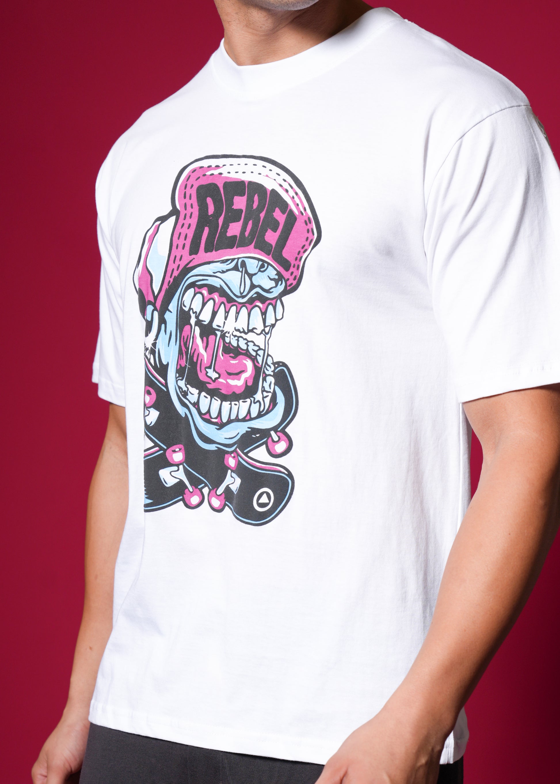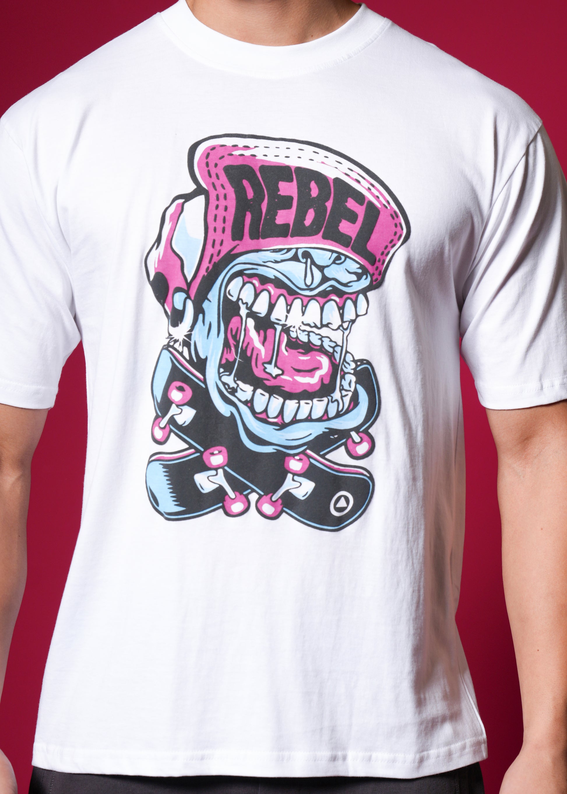 Scream your style with this vibrant, oversized white tee featuring a loud, cartoonish "REBEL" graphic with bold pink and blue accents. Crafted from 100% bio-washed cotton, it delivers superior comfort and a soft touch. This breathable, easy-to-style shirt is your perfect choice for a playful yet edgy streetwear statement that screams personality! ✨