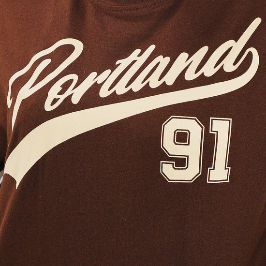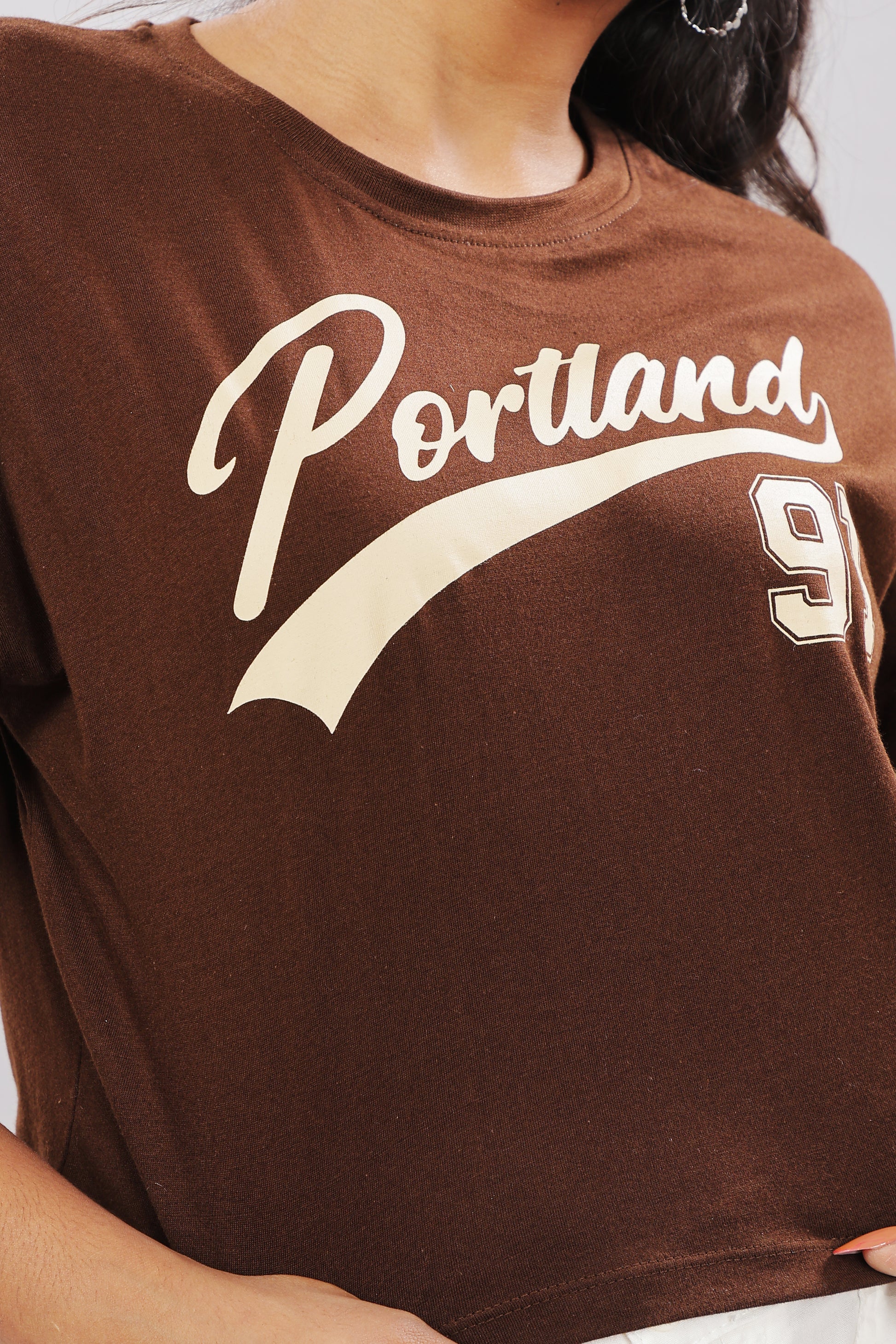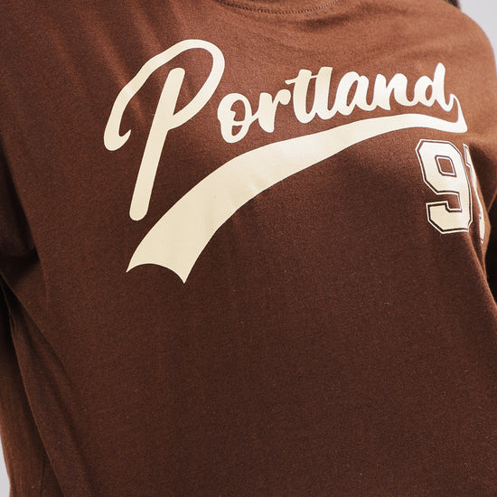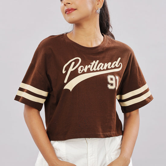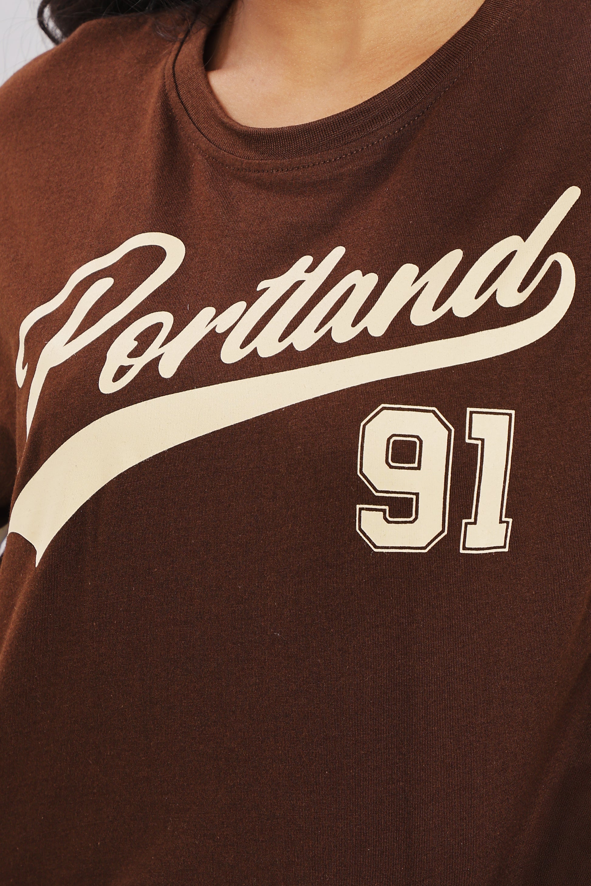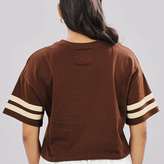 Outlaws Print Extended Sleeves Cotton Brown Boxy Top