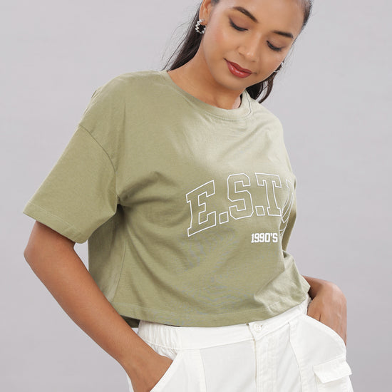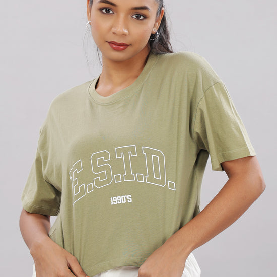 Women’s Printed Boxy Crop Top – A streetwear-inspired essential, this top features bold prints, extended sleeves, and a relaxed boxy fit, all crafted from soft cotton fabric for all-day comfort and style.