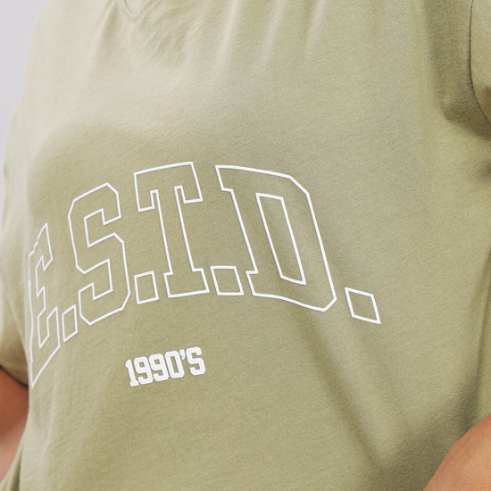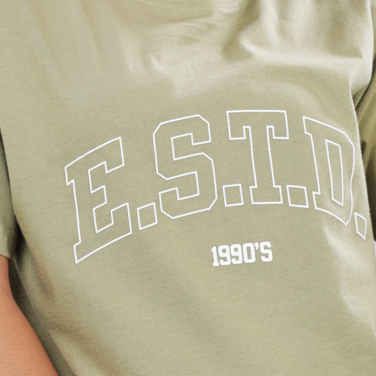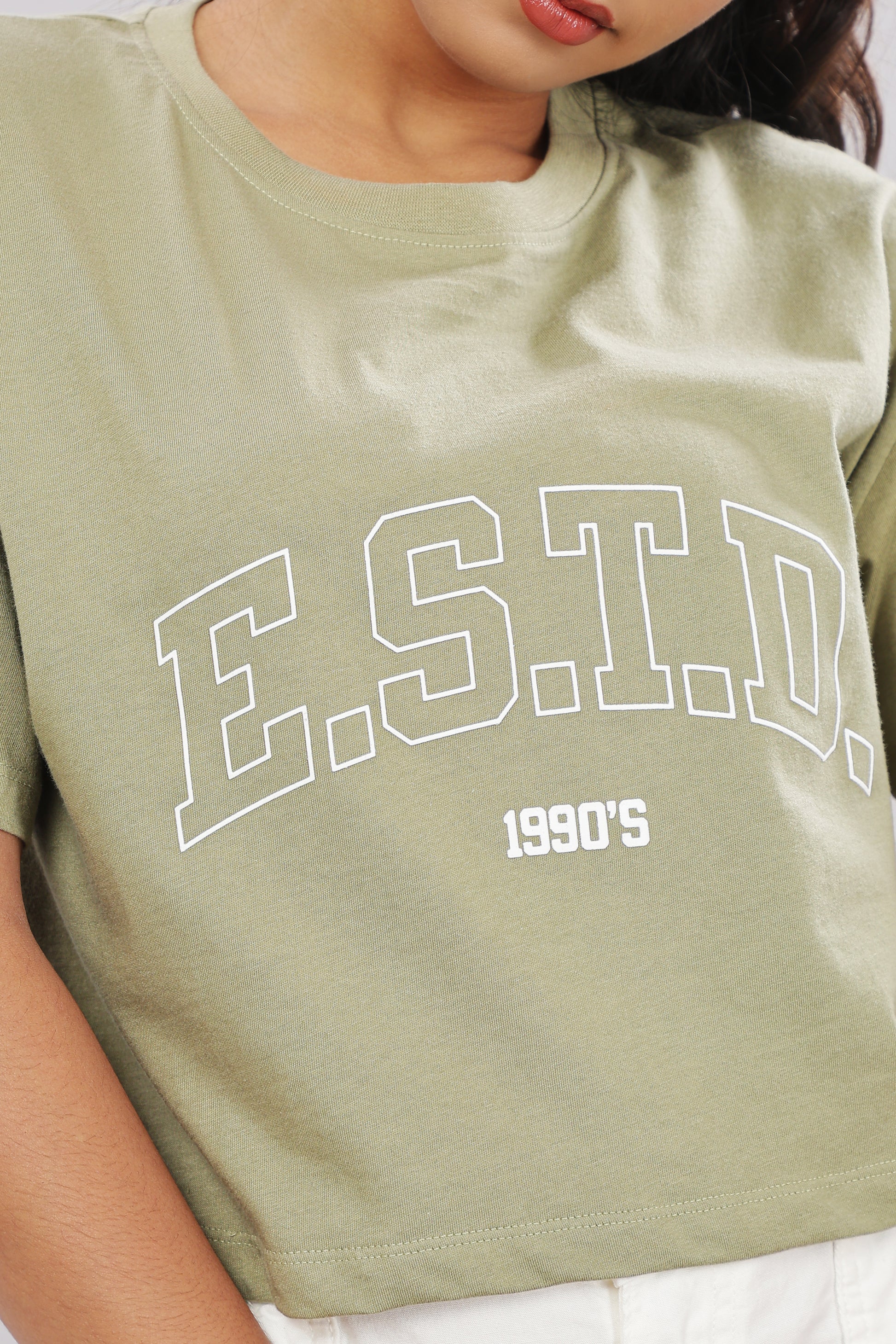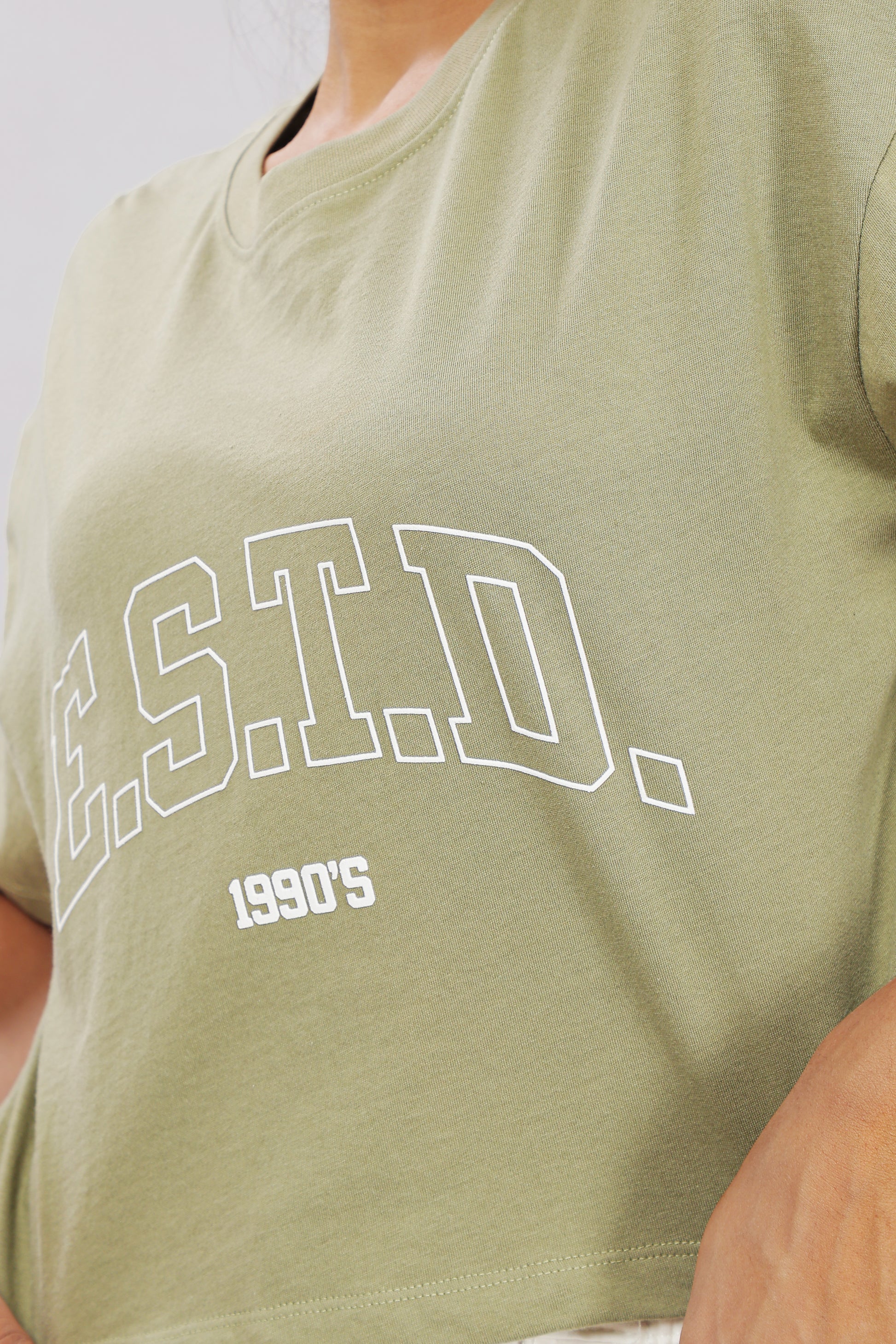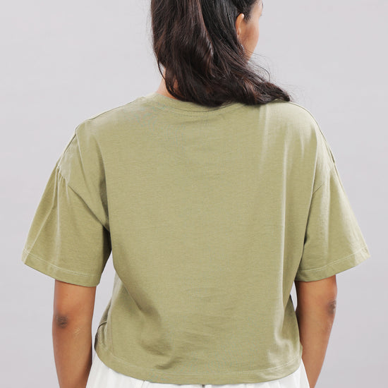 Outlaws Print Extended Sleeves Cotton Olive Boxy Top