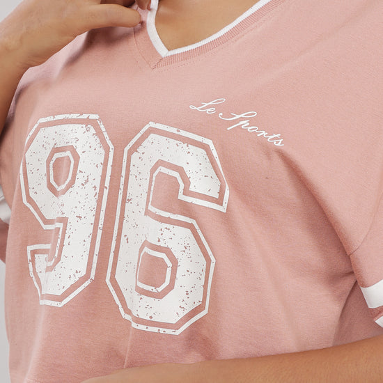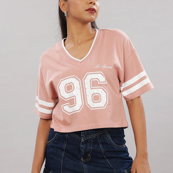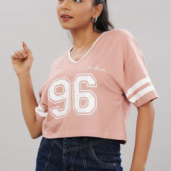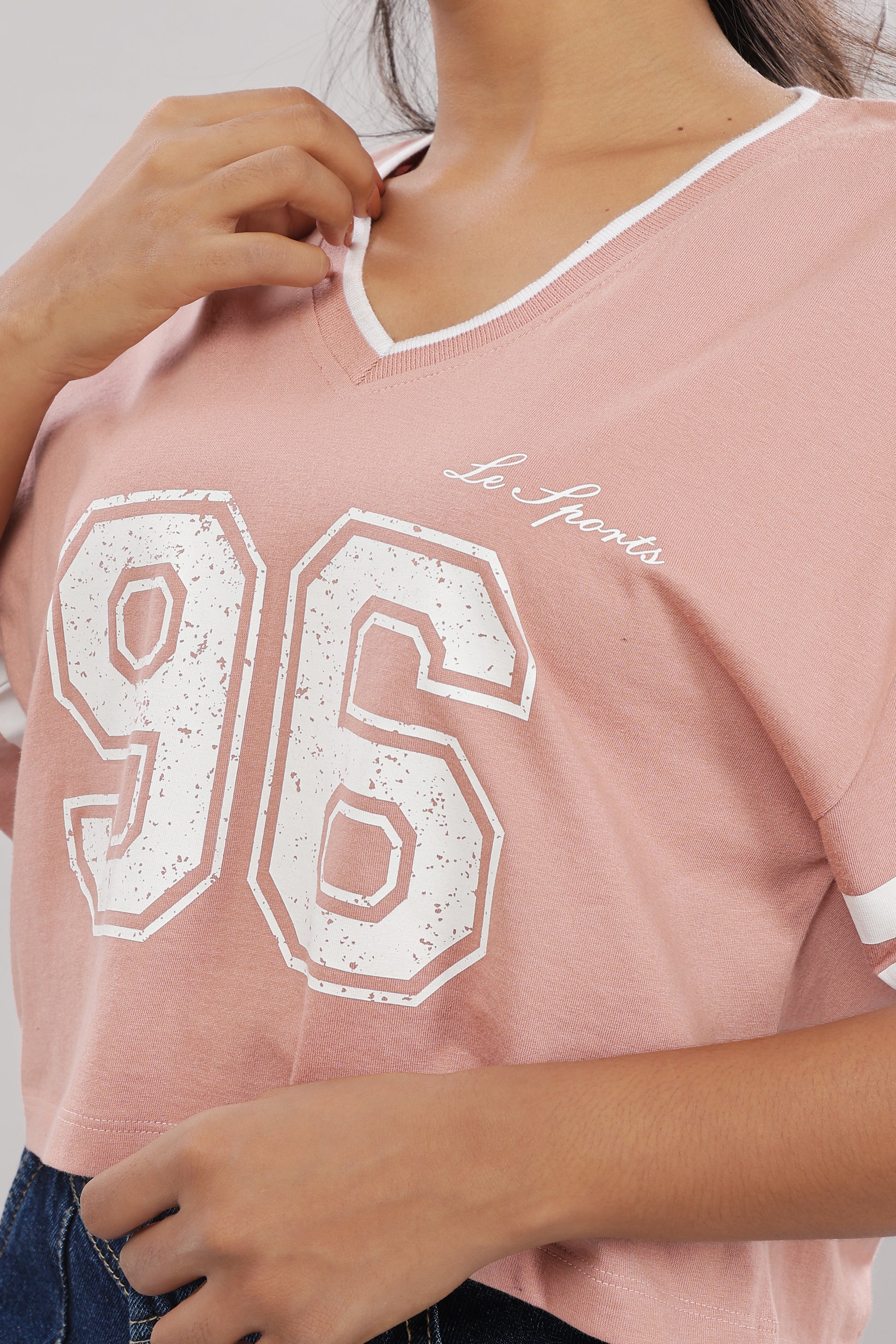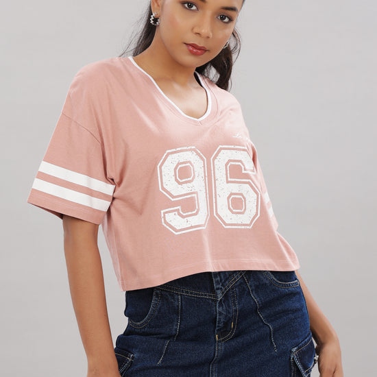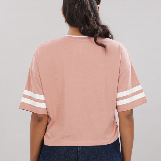 Outlaws Print Extended Sleeves Cotton Pink Boxy Top