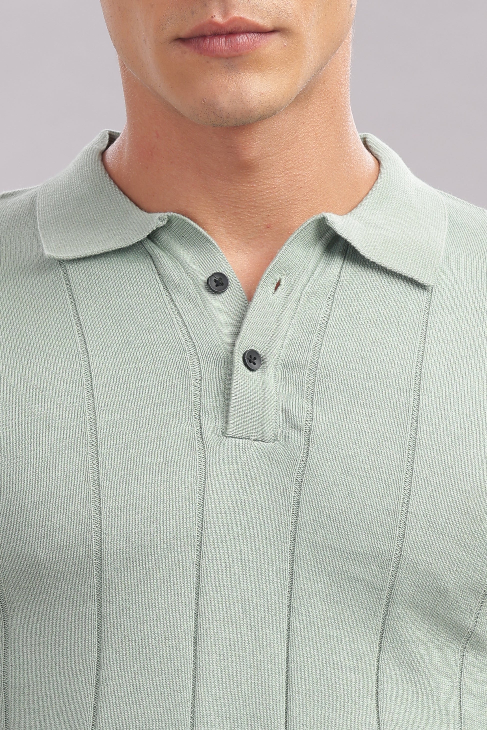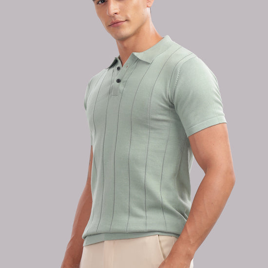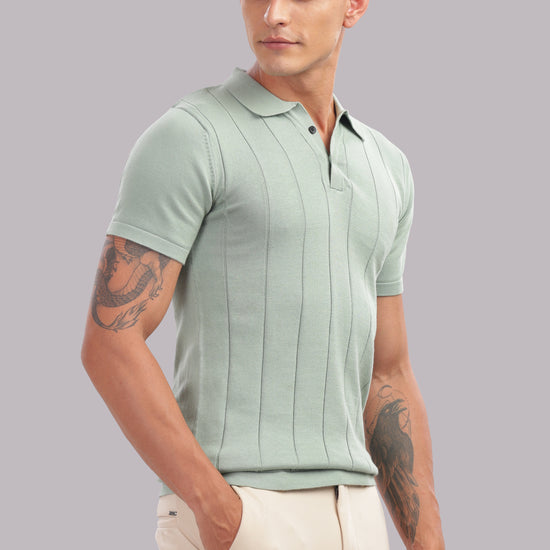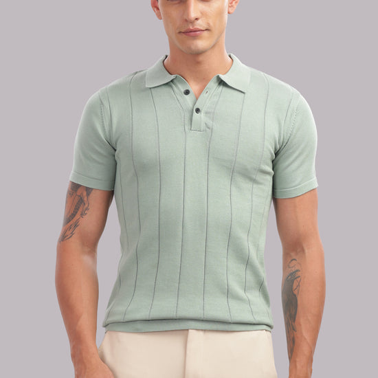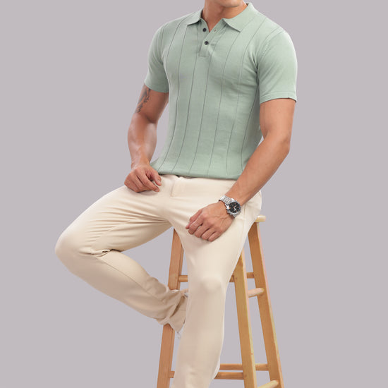 Stay effortlessly stylish with this Men’s Mint Green Polo Shirt, crafted from 100% premium cotton for ultimate comfort and breathability. The shirt features a ribbed texture with vertical knit detailing, giving it a refined and modern appeal.