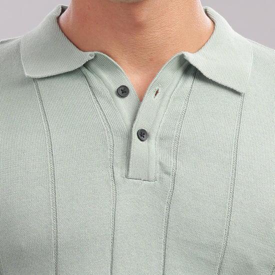 Premium Cotton Men’s Mint Green 100% Cotton Textured Polo Shirt – Smart Casual Wear