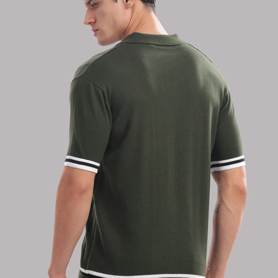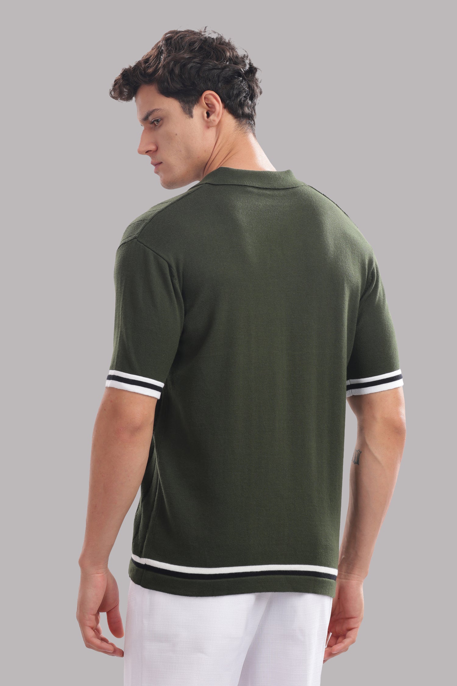 Premium Cotton Men’s Olive Green 100% Cotton Knitted Button-Down Shirt