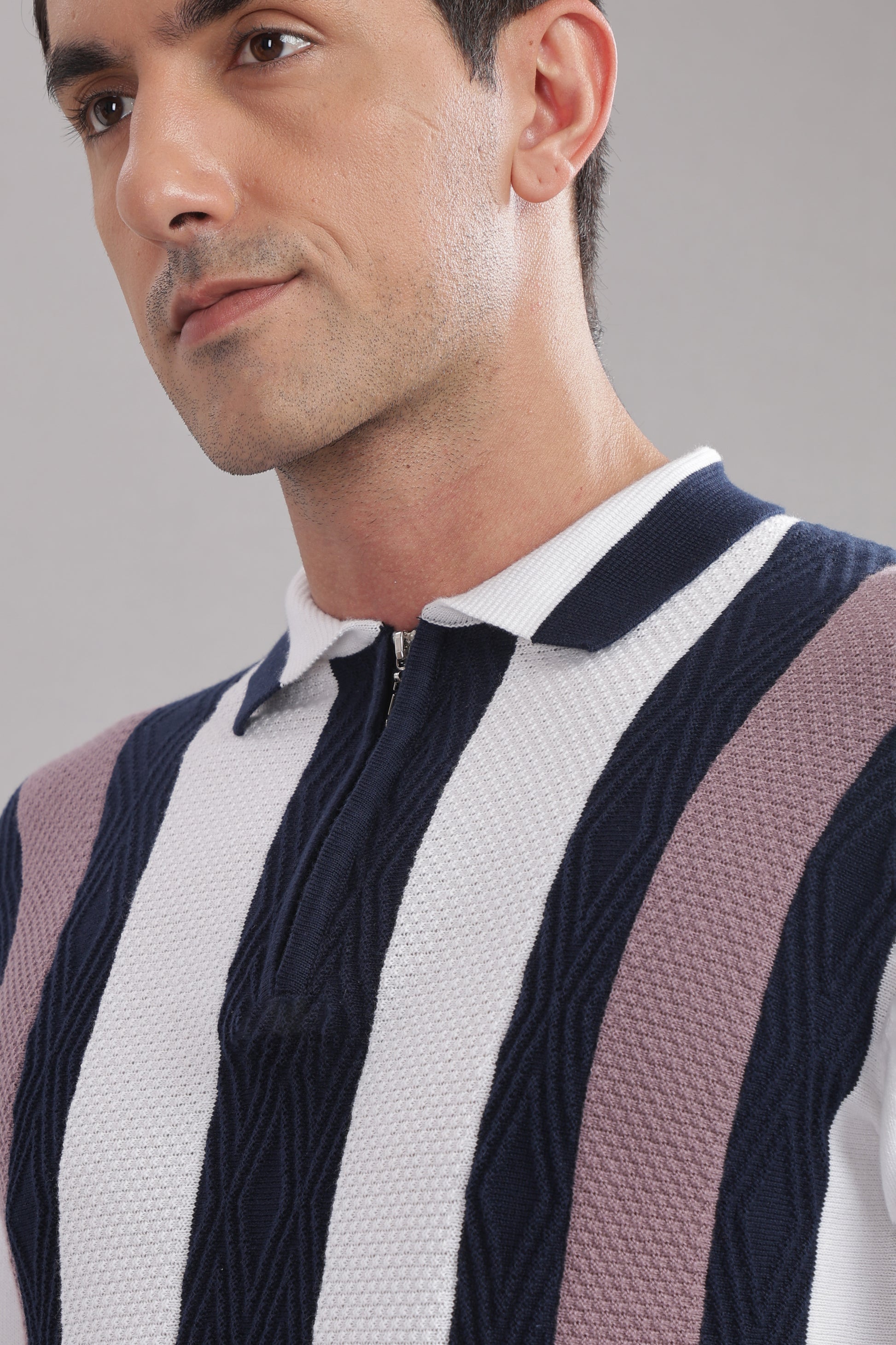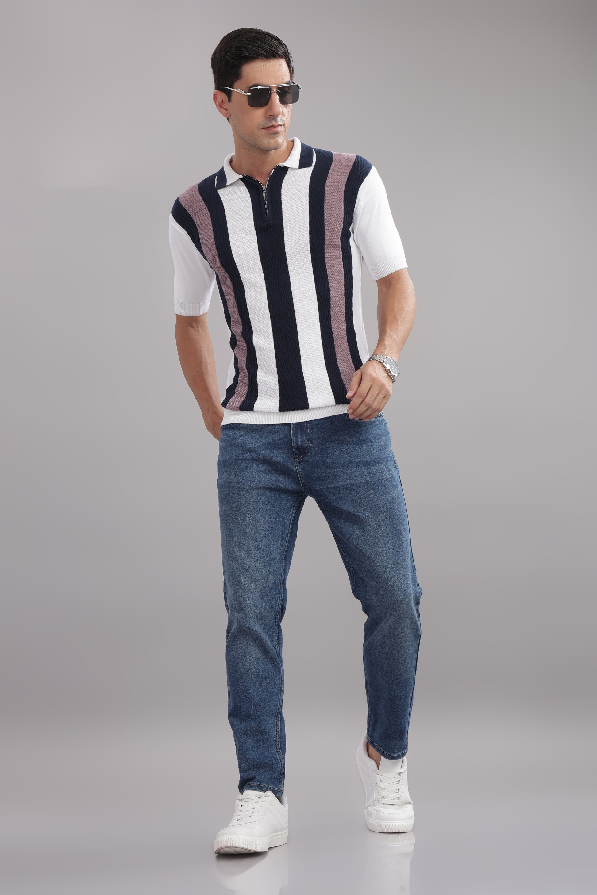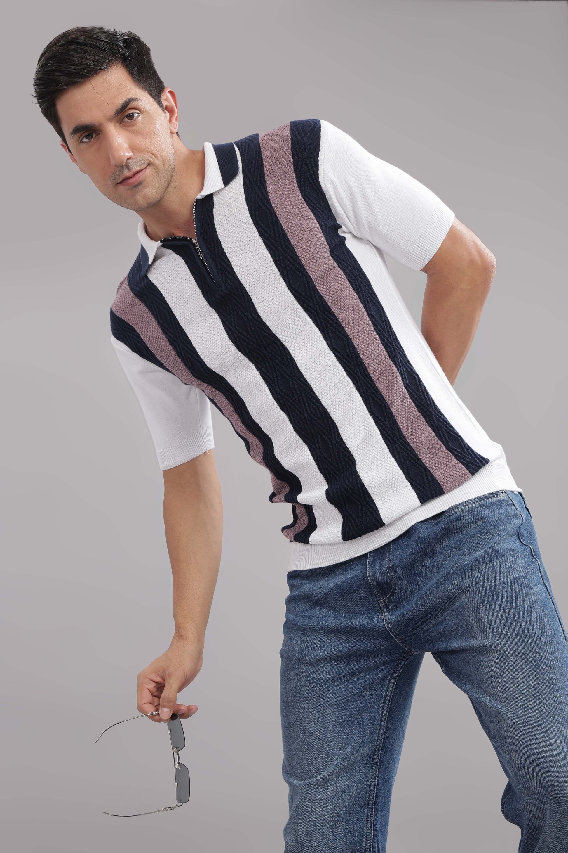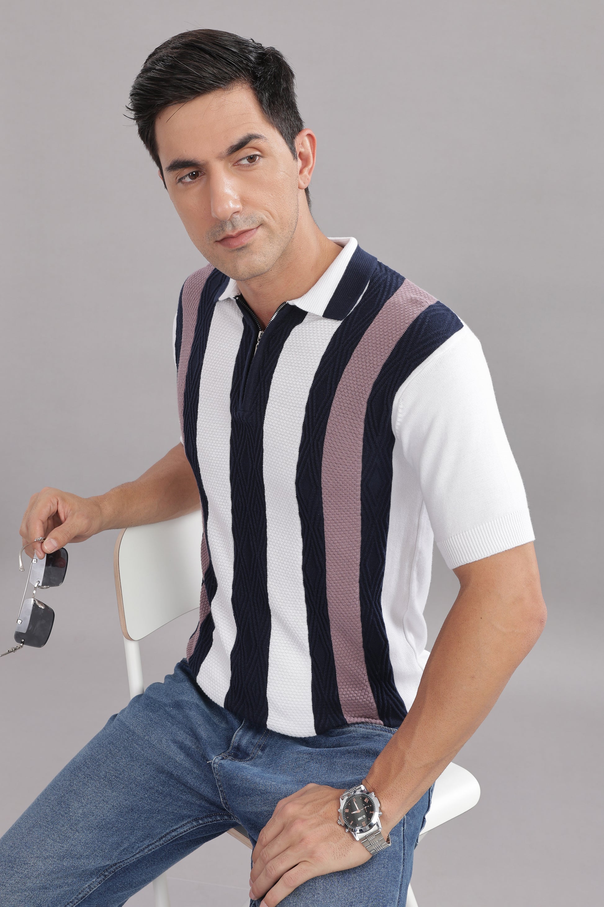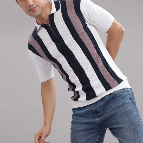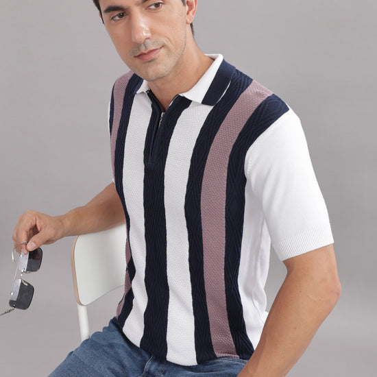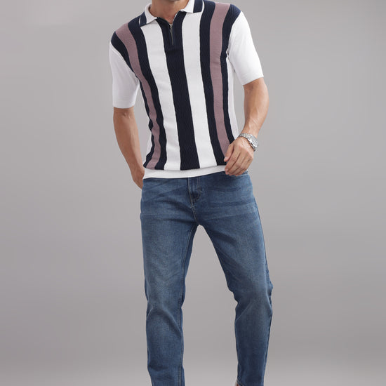 Upgrade your casual wardrobe with this Menβs Vertical Stripe Polo T-Shirt, made from 100% premium cotton for unmatched comfort and breathability. Featuring bold vertical stripes in white, blue, and purple, this polo blends modern color-block style with a timeless silhouette. πΏπ