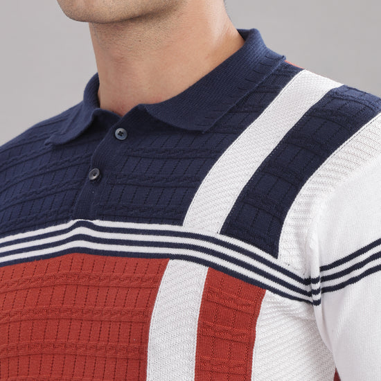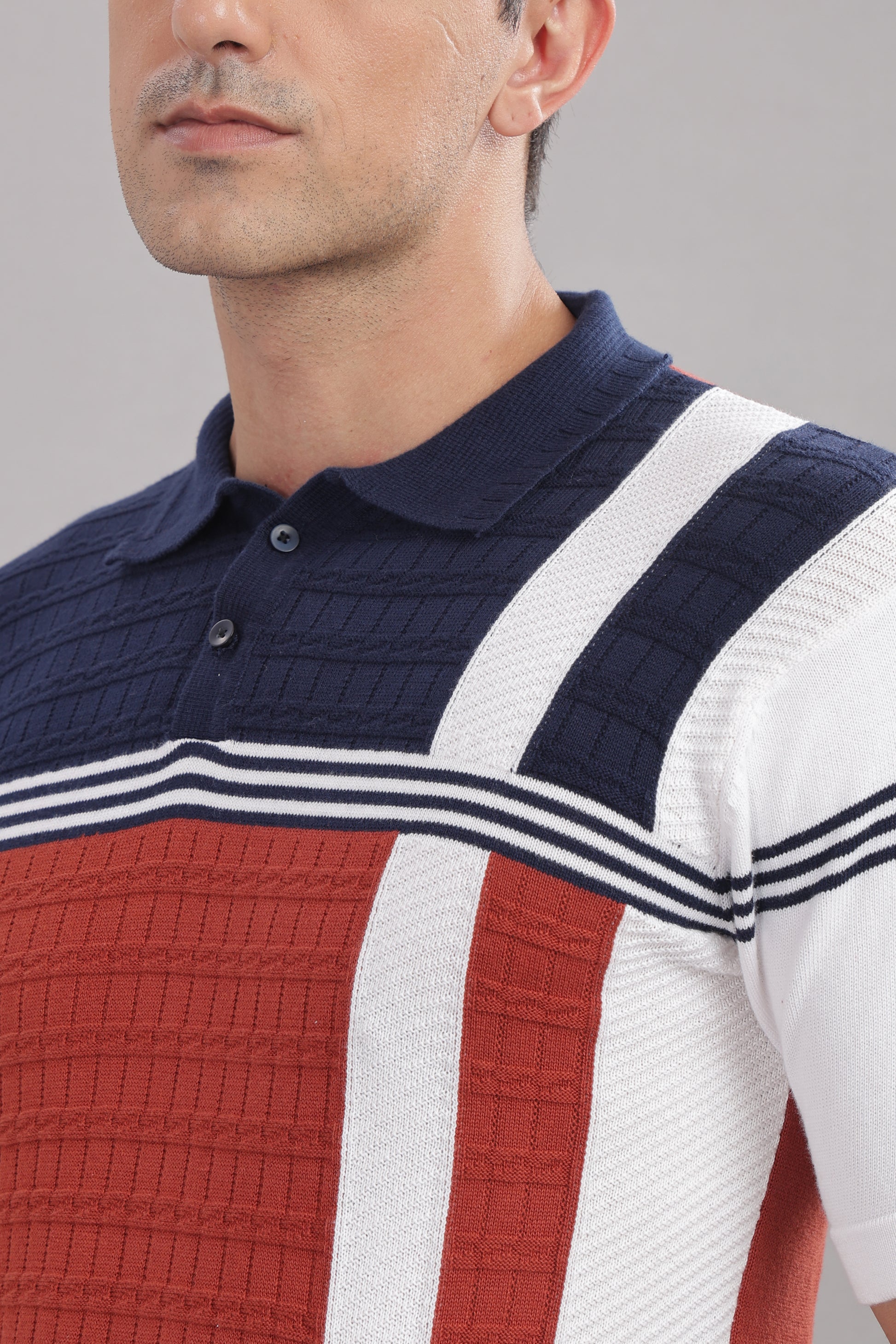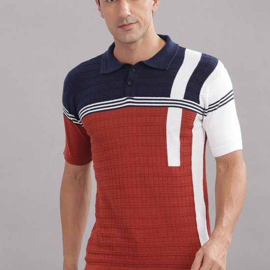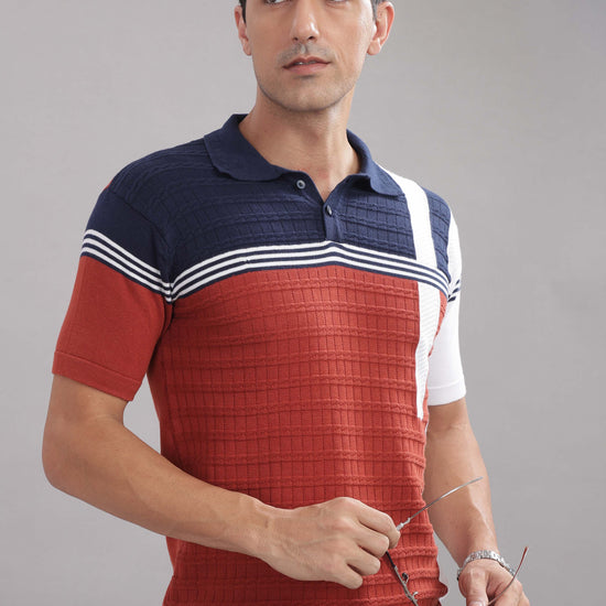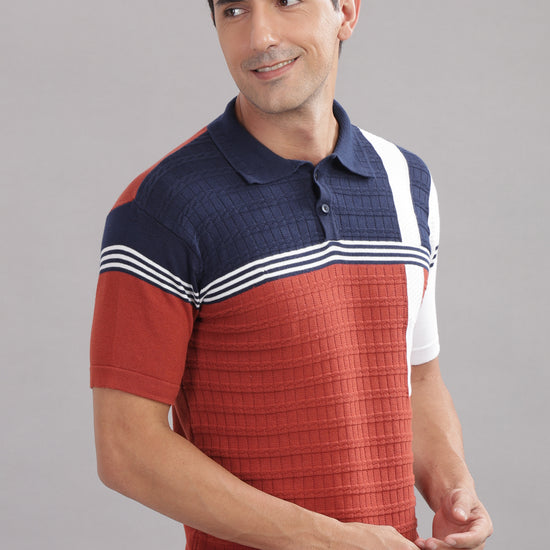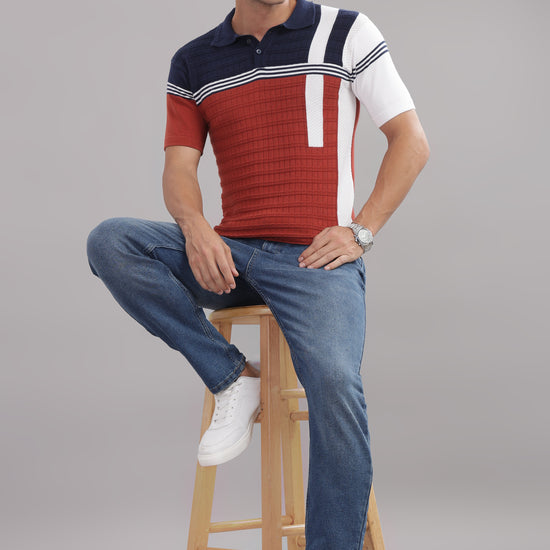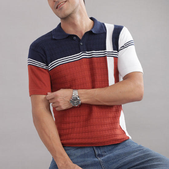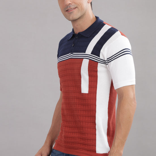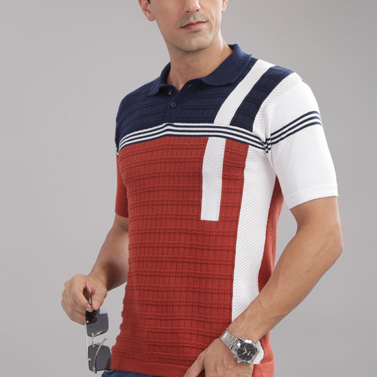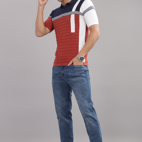 Premium Cotton Stylish MultiColour Blocked Flat Knit T-Shirt