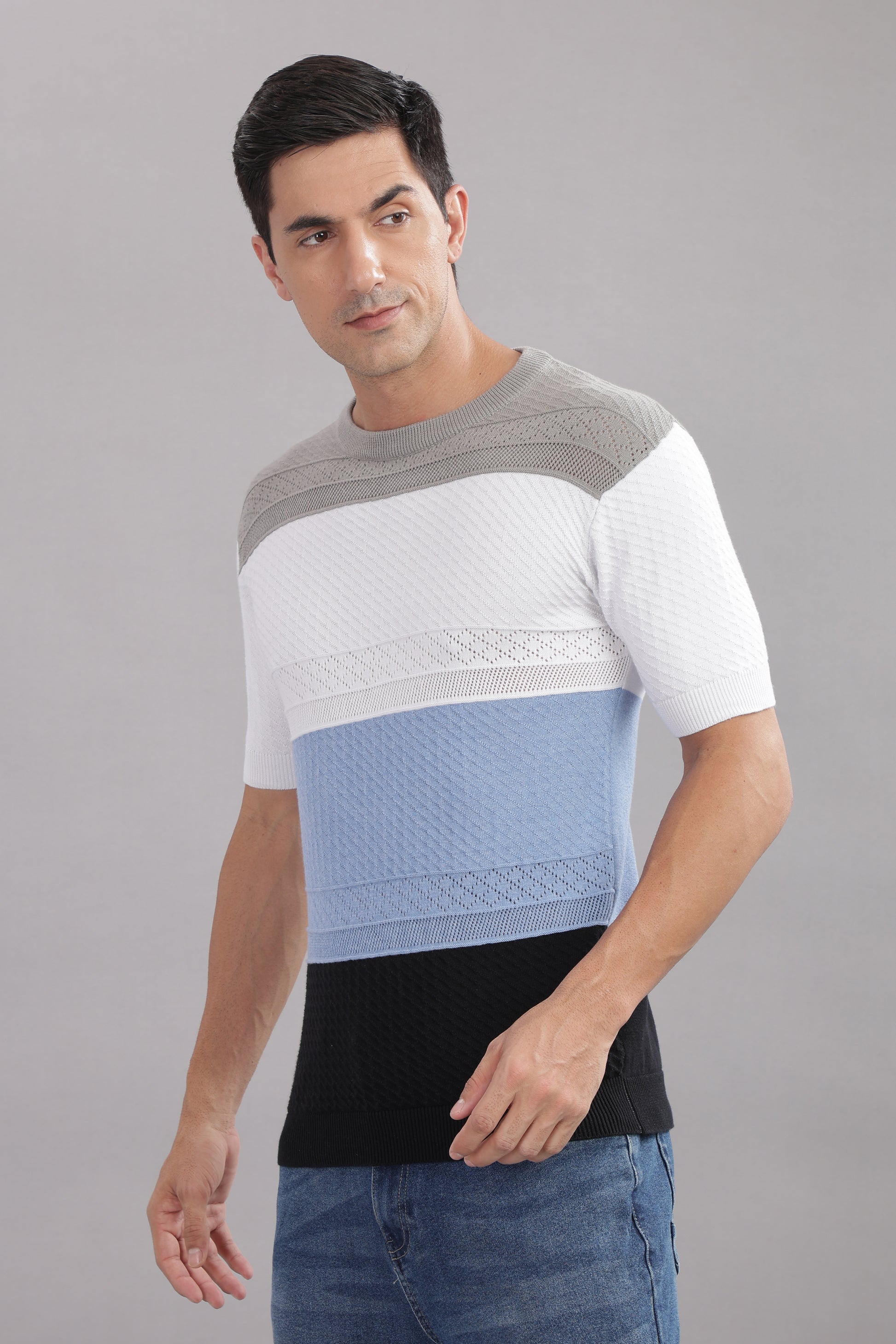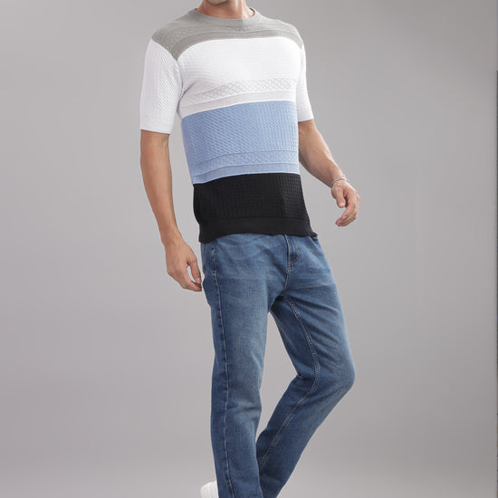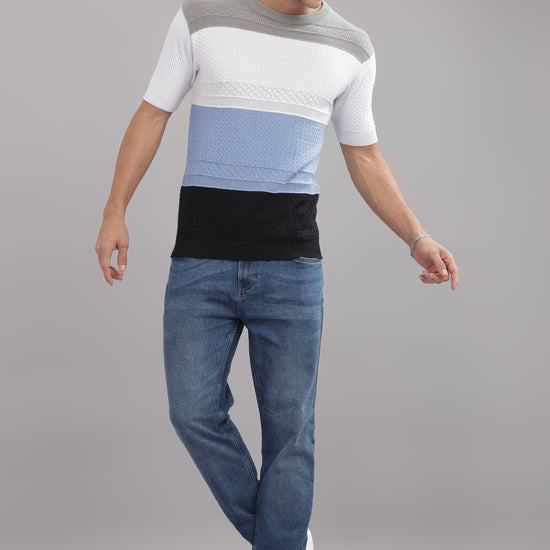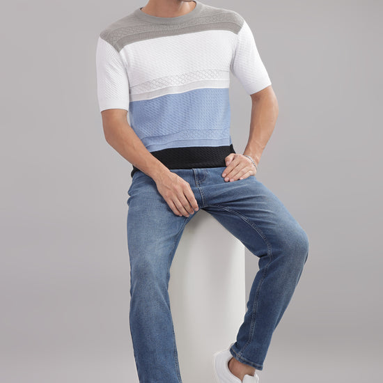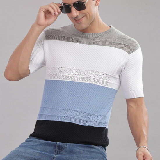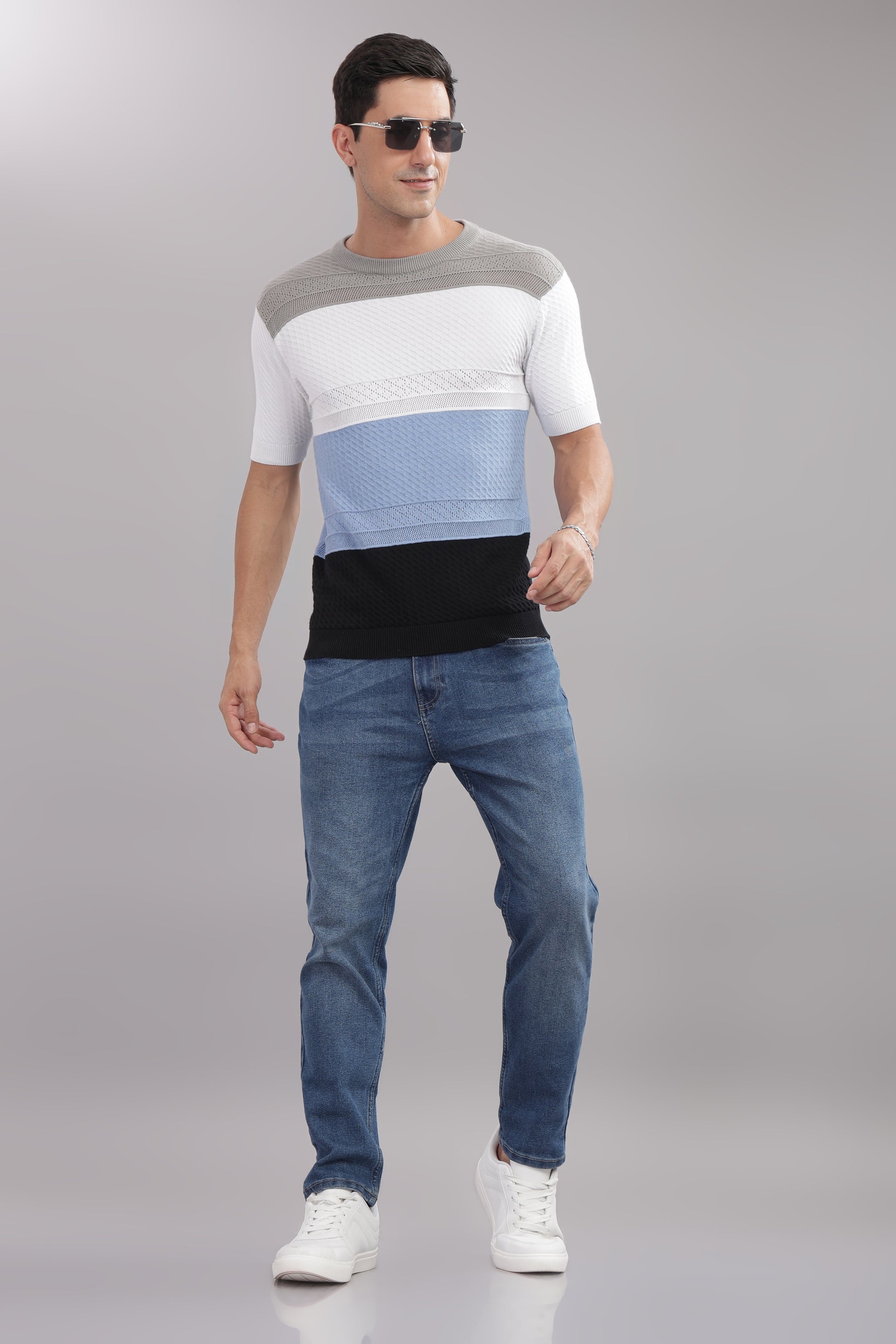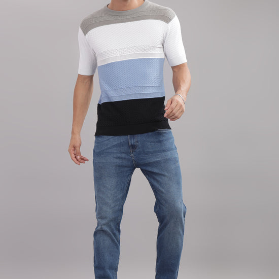 Premium Cotton Stylish MultiColour Striped Flat Knit T-Shirt