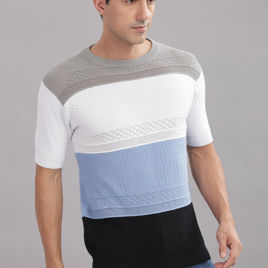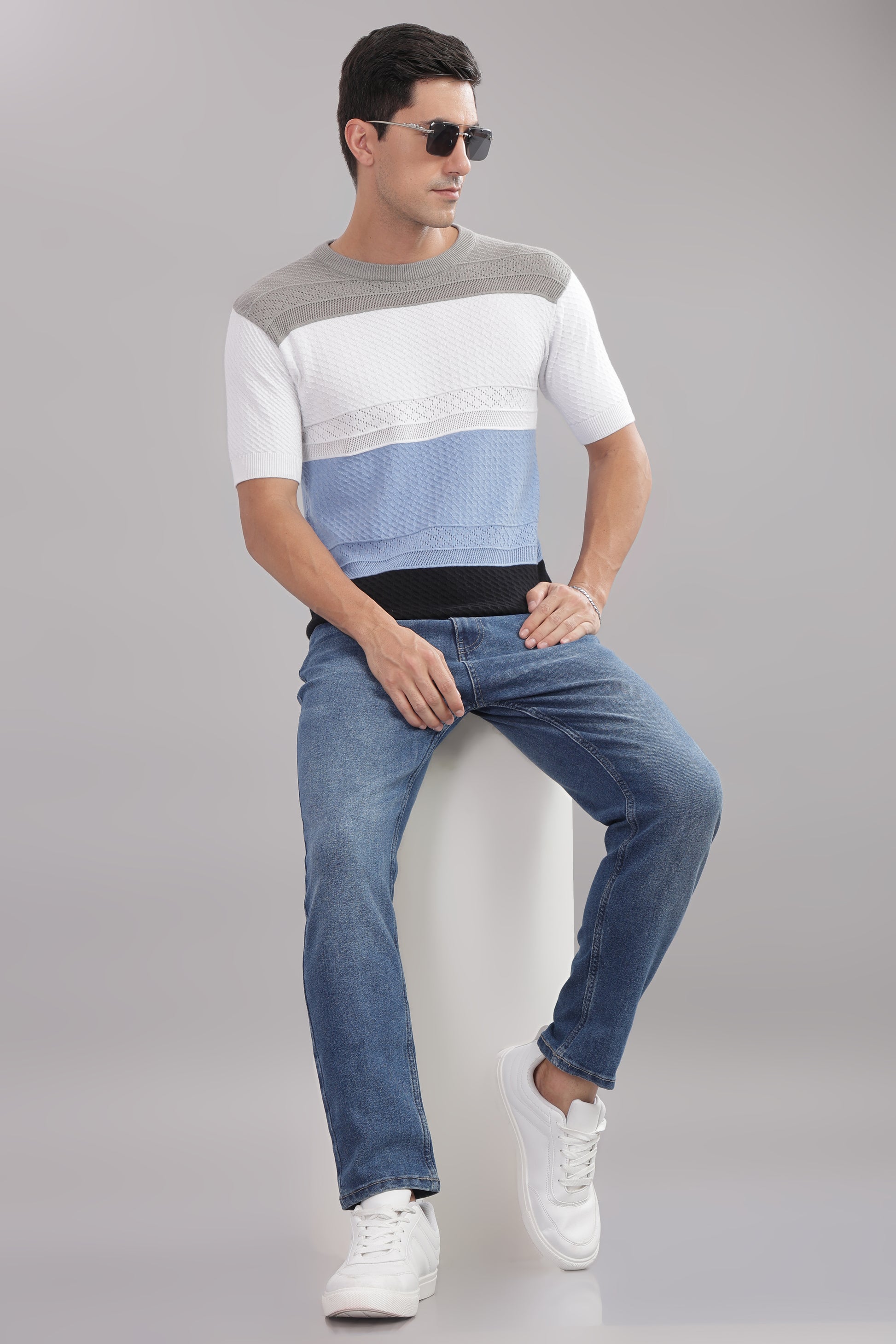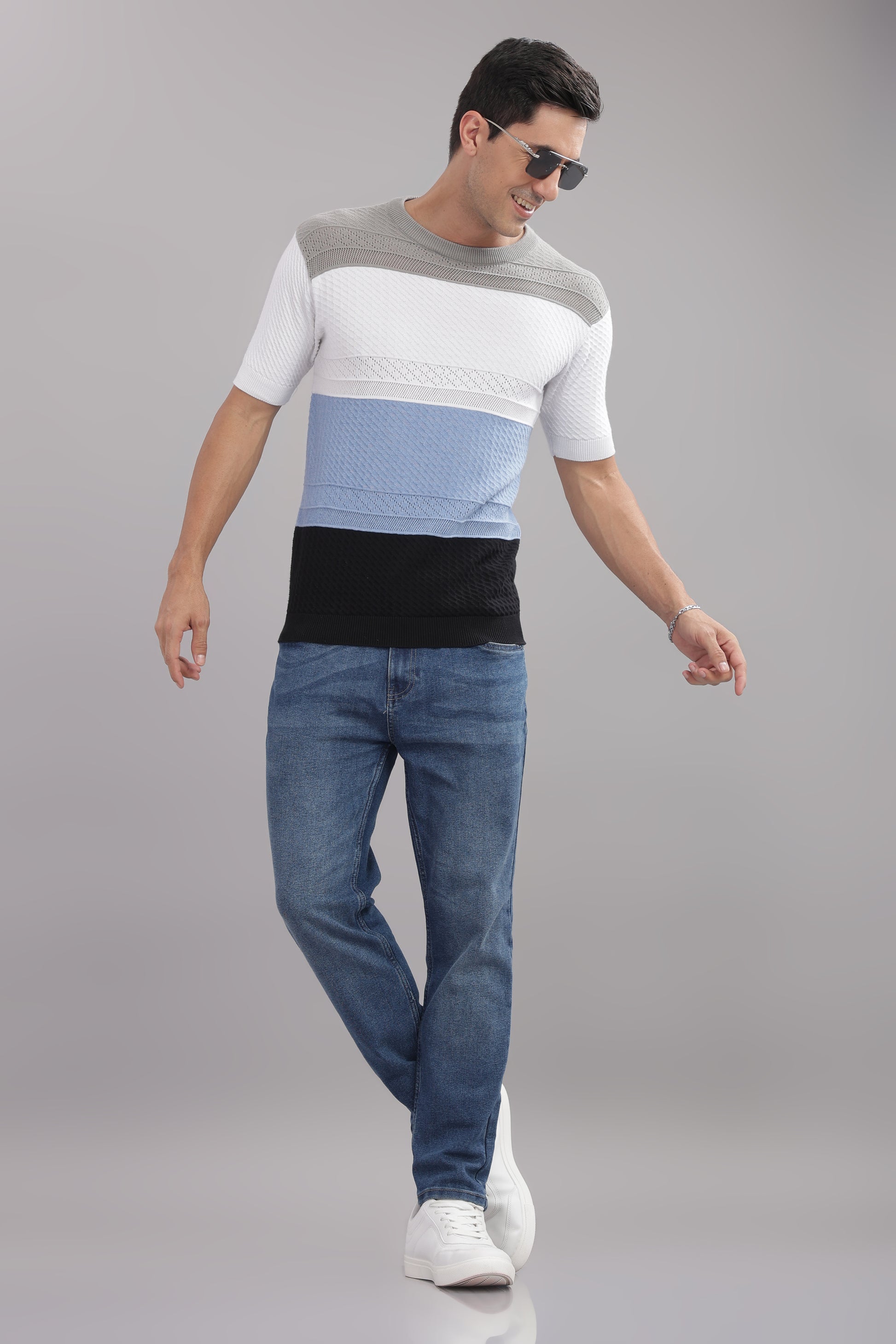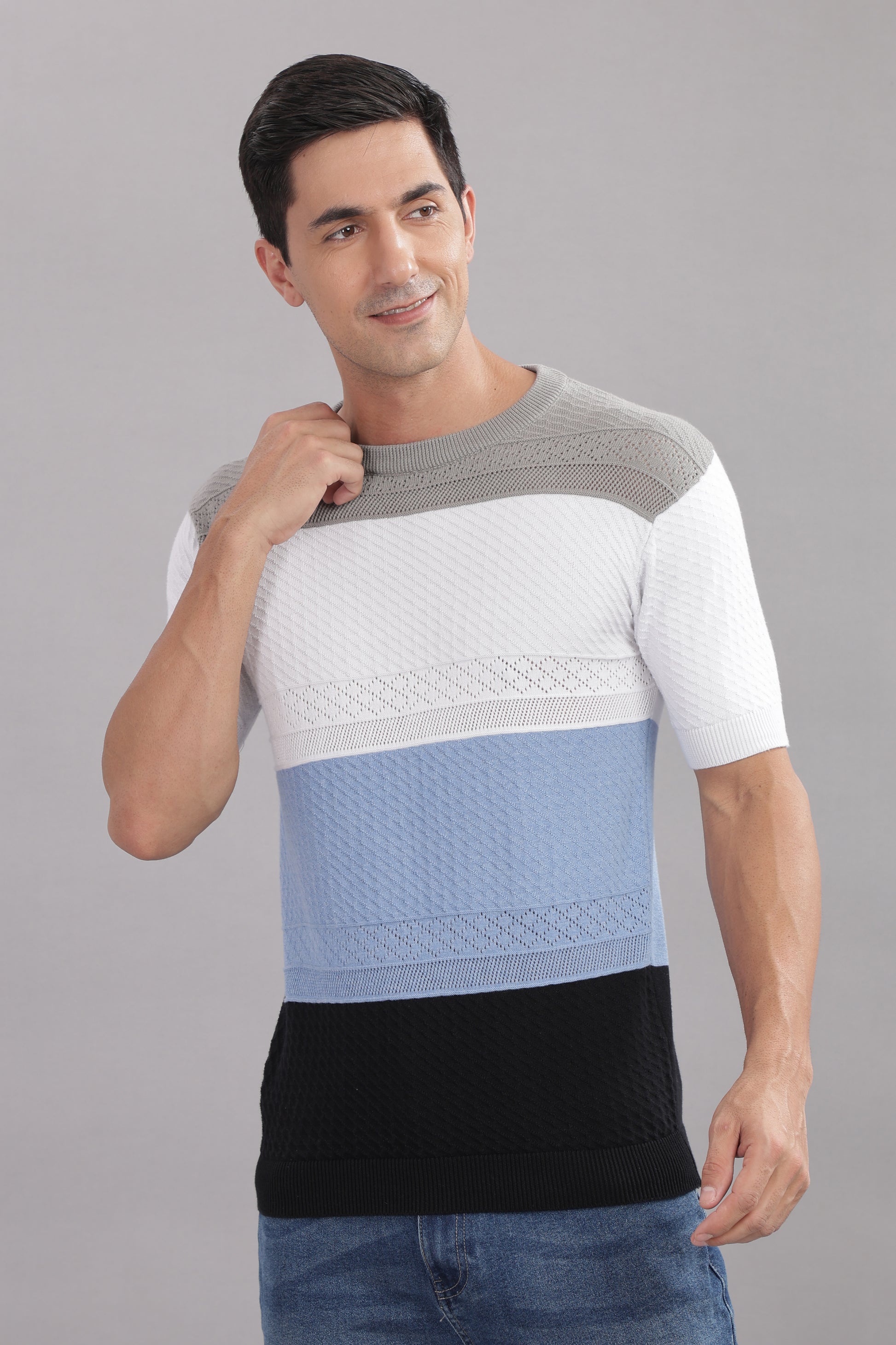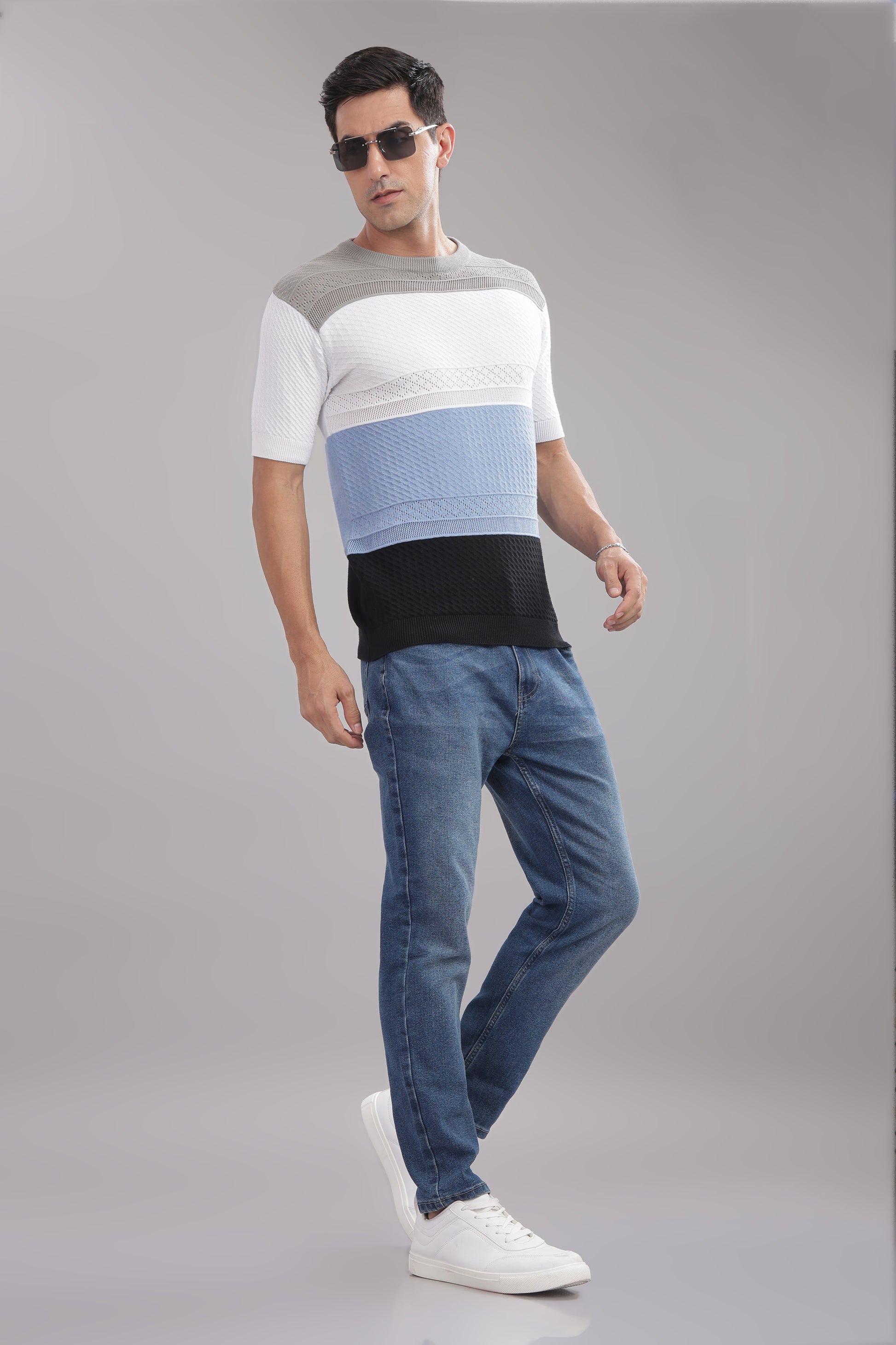 Premium Cotton Stylish MultiColour Striped Flat Knit T-Shirt