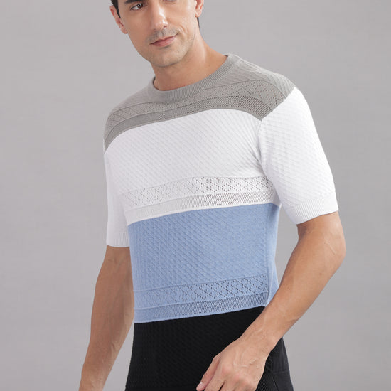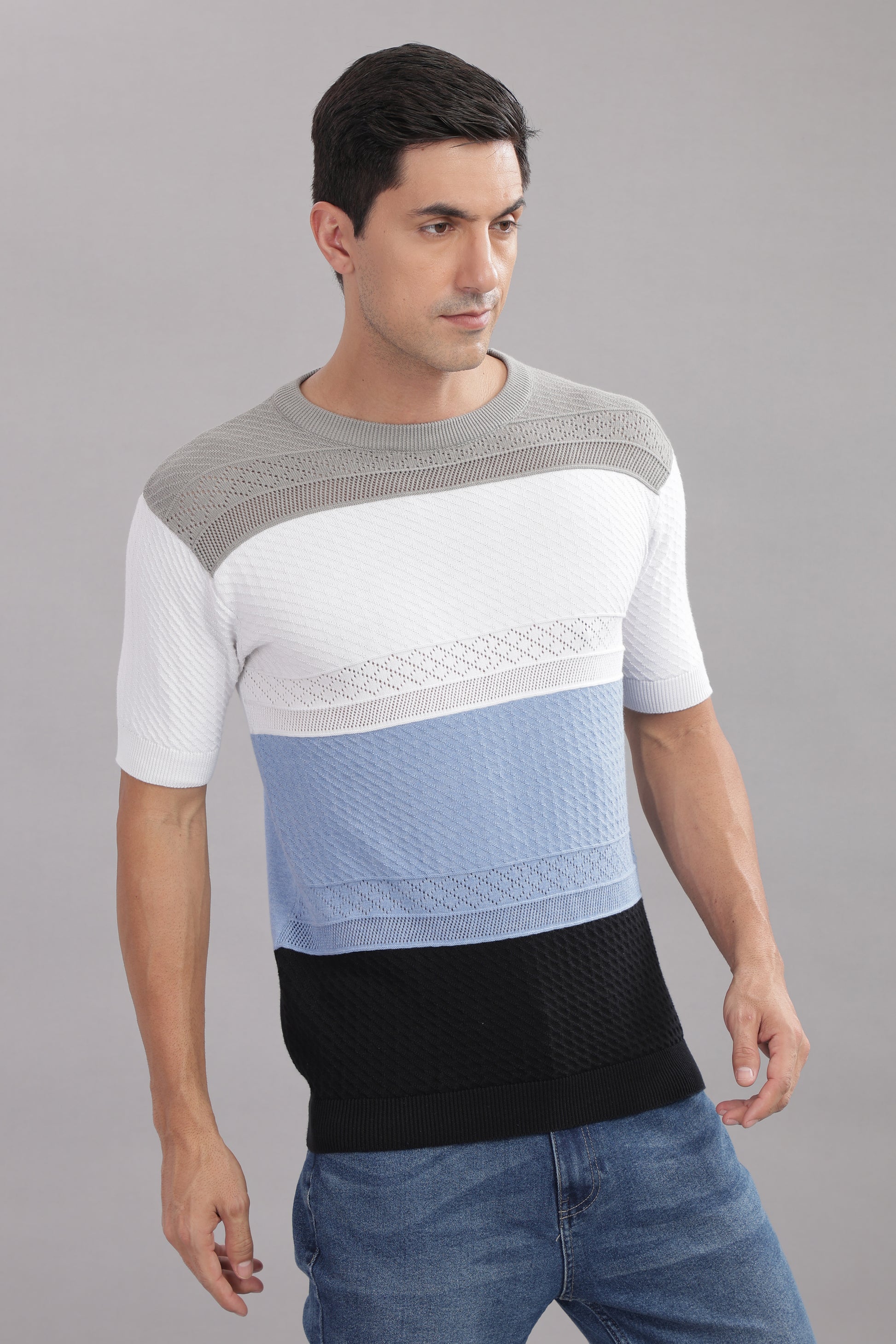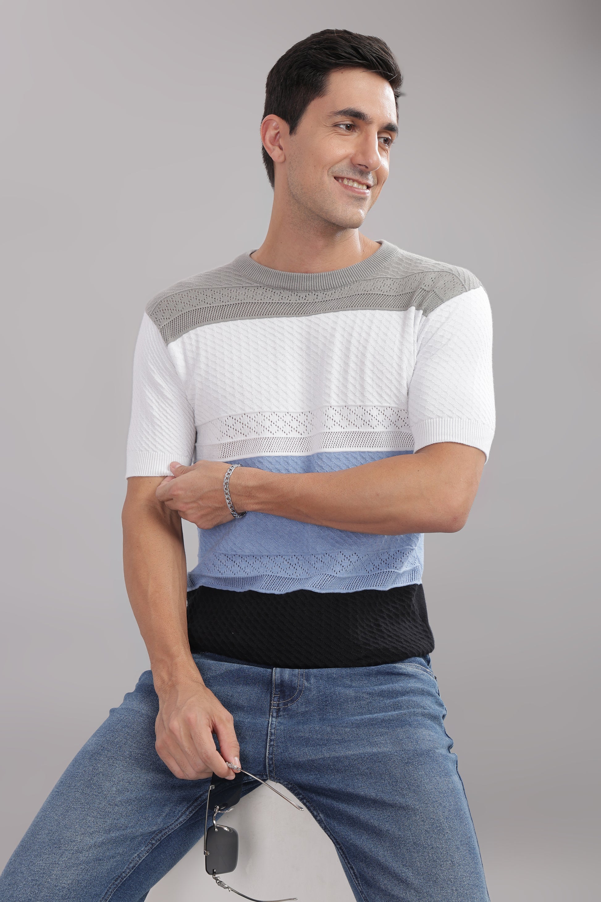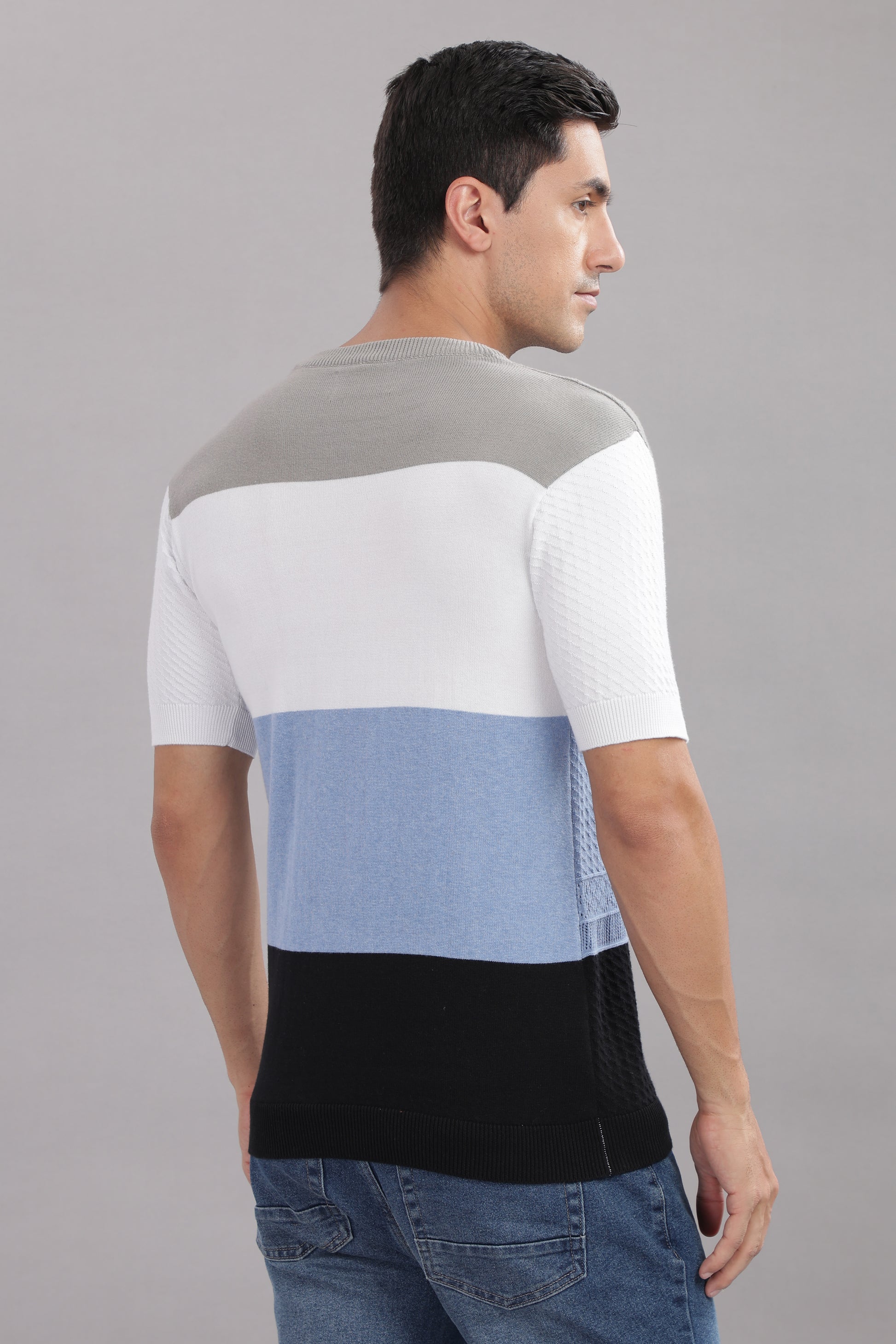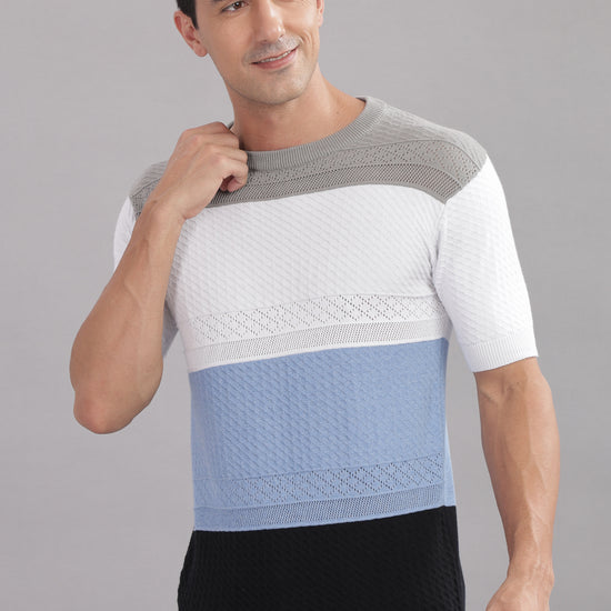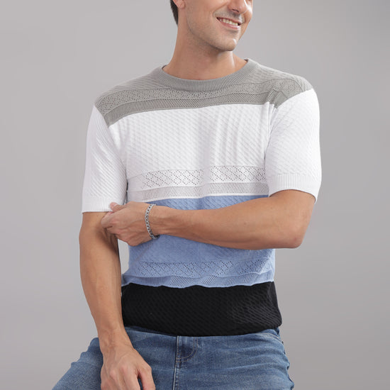 Premium Cotton Stylish MultiColour Striped Flat Knit T-Shirt